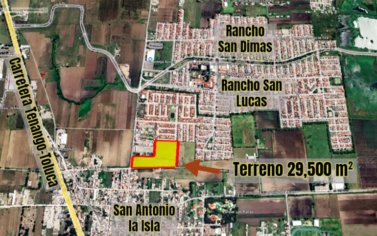 Con una ubicación envidiable entre los fraccionamientos San Dimas y San Lucas, y en las cercanías de las poblaciones de Tenango, Calimaya y Toluca, este terreno se encuentra rodeado de una densa zona residencial, lo que garantiza un flujo constante de potenciales clientes.