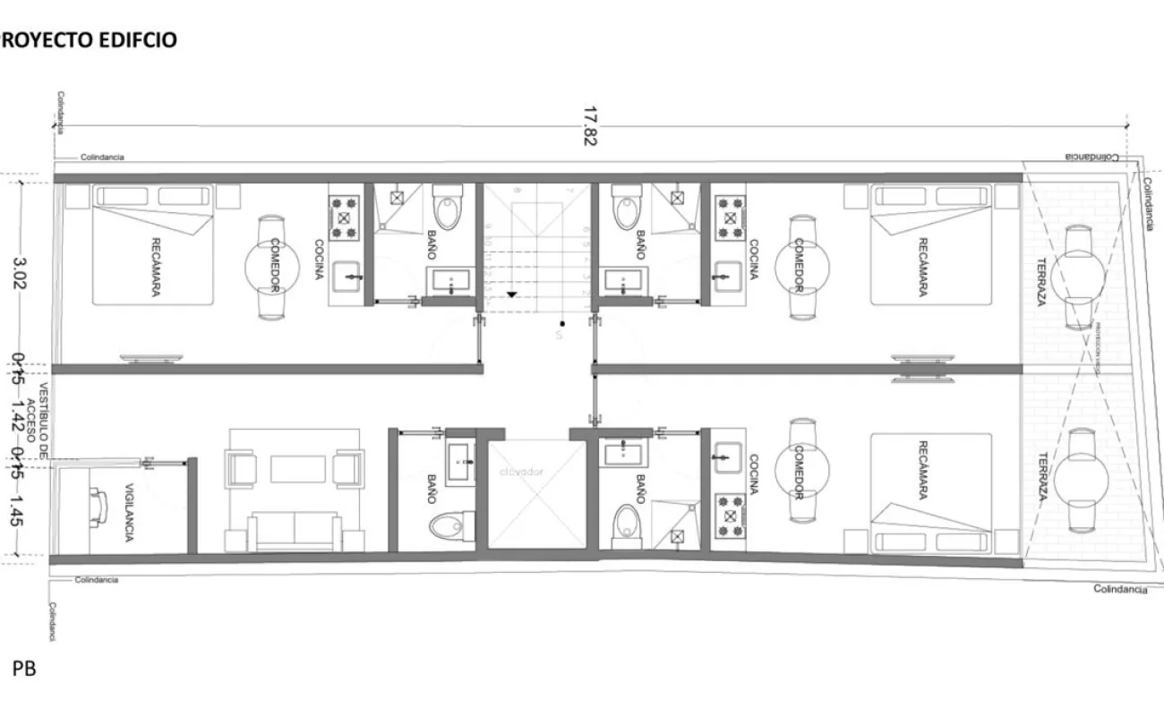 Uso de suelo: Habitacional. 15 m de altura. 20% área libre. 5 viviendas.