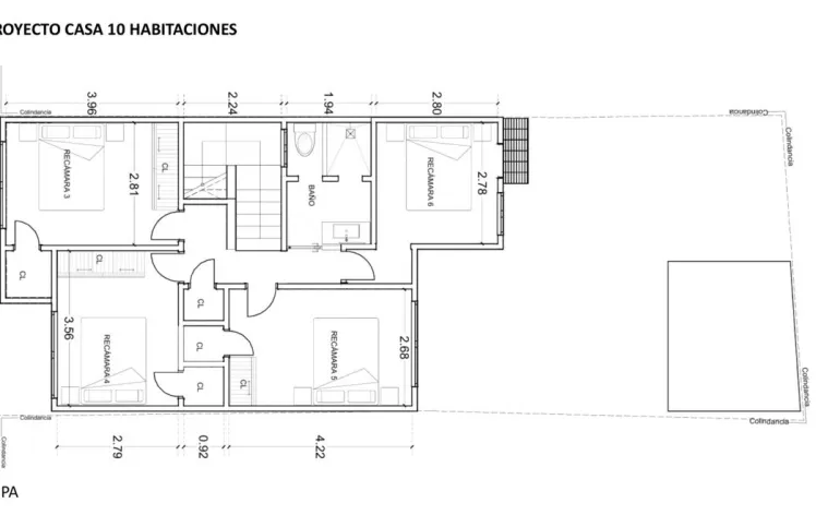 Proyecto: Opción proyecto casa 10 habitaciones, Opción proyecto edifcio 20 habitaciones con 4 deptos. cada nivel. 5 niveles