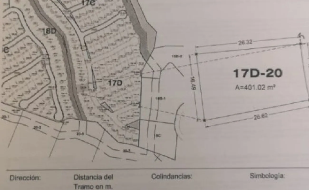 Terreno de 401m2 mas 100m2 no escriturados de uso privativo.