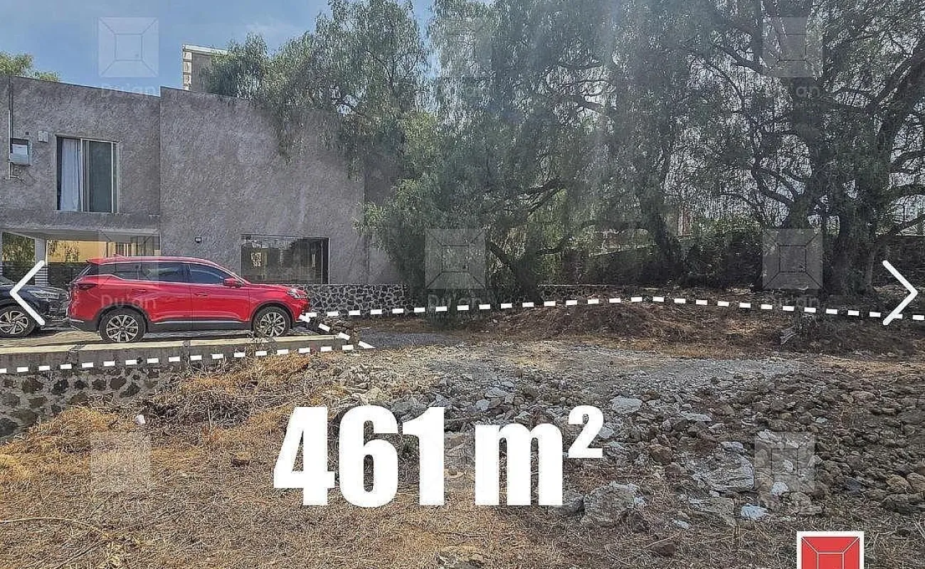 Son 461m2 de superficie, el terreno es totalmente plano con arbolado muy grande de Pirules en una sección. Cuenta ya en uno de sus perímetros con una cimentación de contención de cadena para el desplante de muro para la barda perimetral.