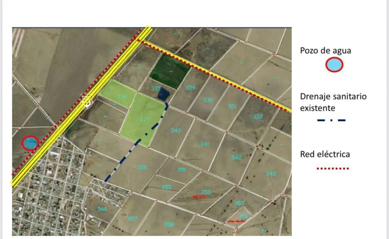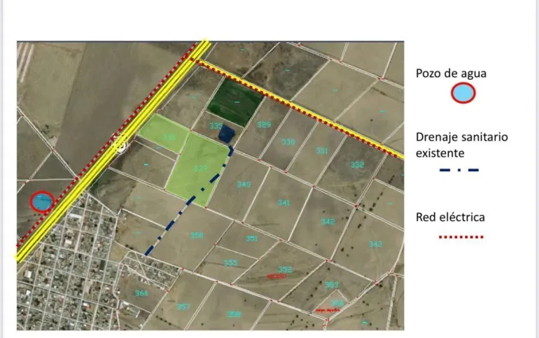• Red de agua potable a 500 m y zona apta para perforación de pozo