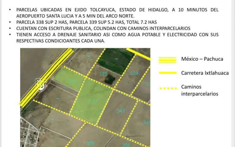 Terreno de 52,000 m² a pie de autopista México–Pachuca, General Felipe Ángeles, Municipio de Tolcayuca, Hidalgo a minutos del AIFA – Uso de suelo mixto para vivienda, comercio, servicios e industrial.