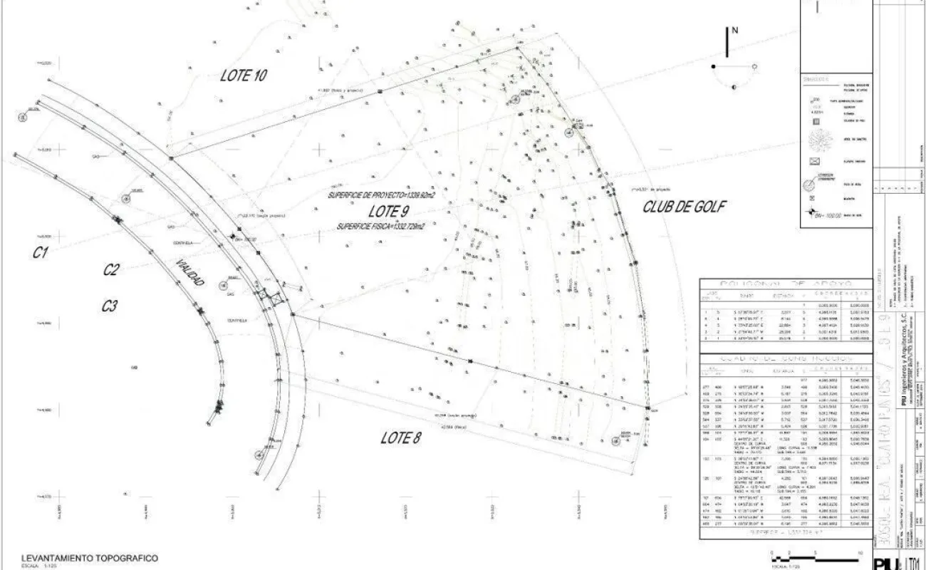 El terreno cuenta con 1,339m2, plano en una parte y descendente en otra que otorga vista al campo de golf. La vista es desde arriba, sin riesgo de que caigan bolas de los hoyos de alrededor.