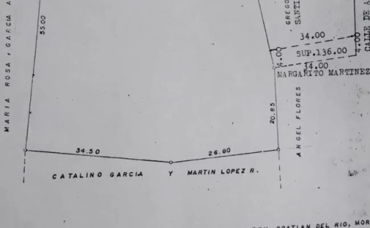 Terreno de 3,347.50 m2 , en calle Allende, Colonia Centro, Poblado Coatlán del Río, Morelos. Con todos los servicios; agua potable, energía eléctrica, alumbrado público, banquetas, pavimento de concreto.
