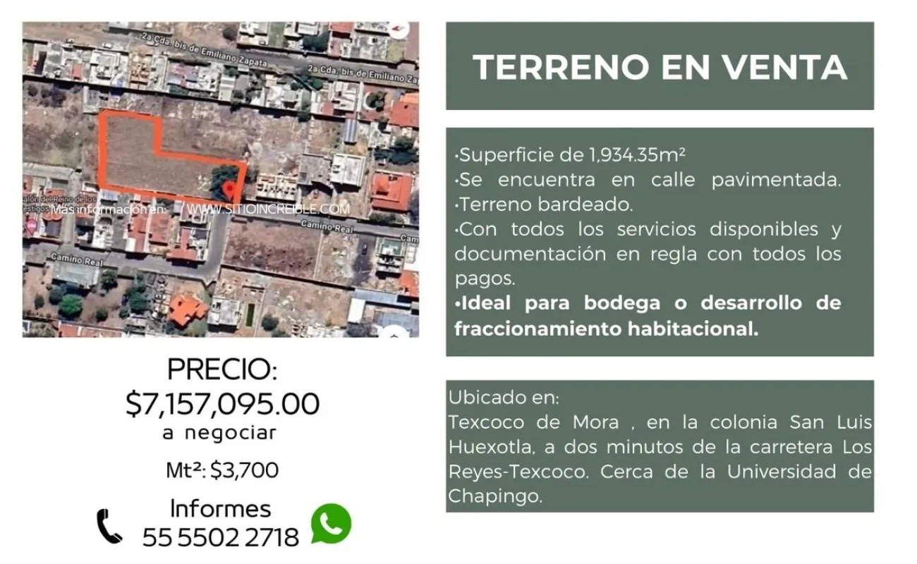 Se vende terreno plano de 1,934,35 m2 , para hacer 6 casas