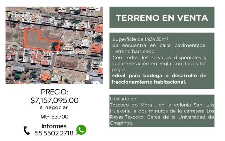terreno en venta Texcoco san luis huexotla