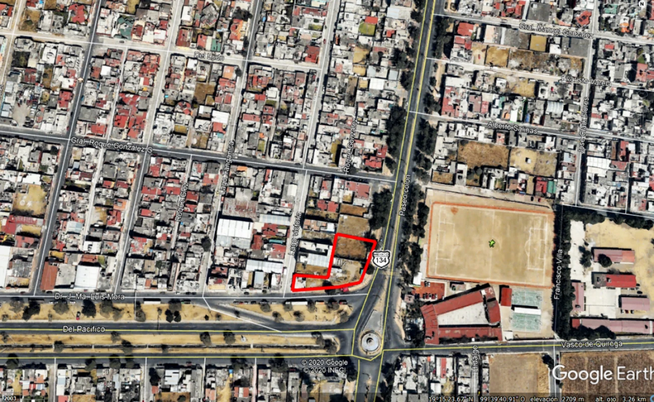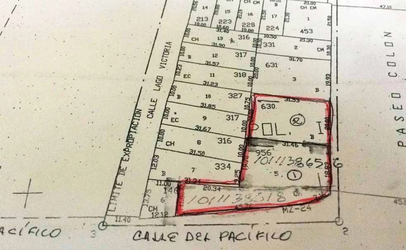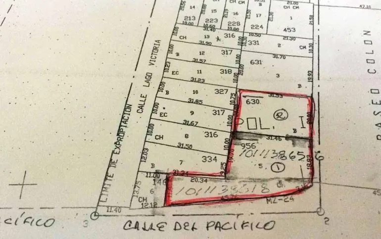 50 metros aprox av del Pacifico. Total 90 m aprox de frente.