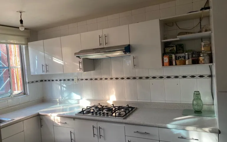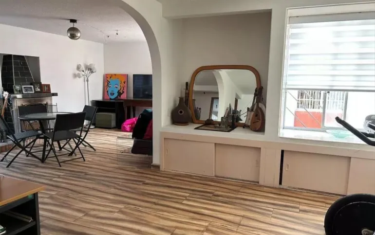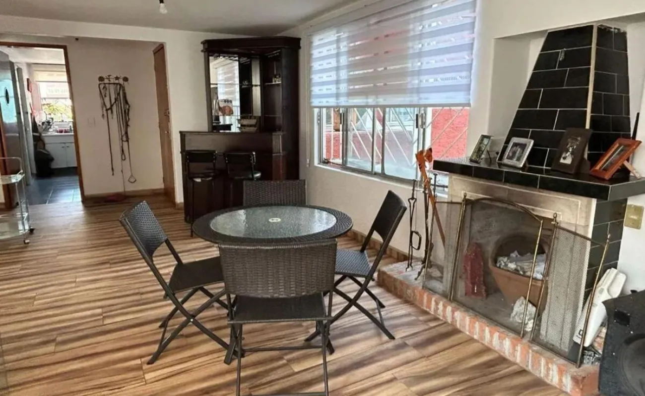 Cuenta con sala (con chimenea) y comedor amplio, 2 recamaras con closet y 3 baños.