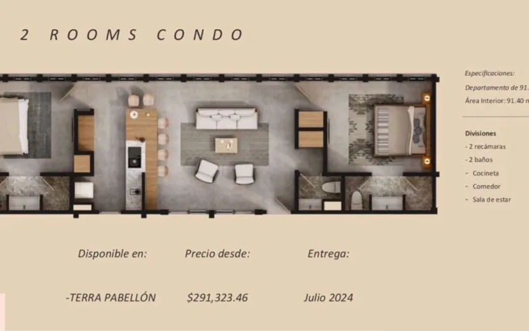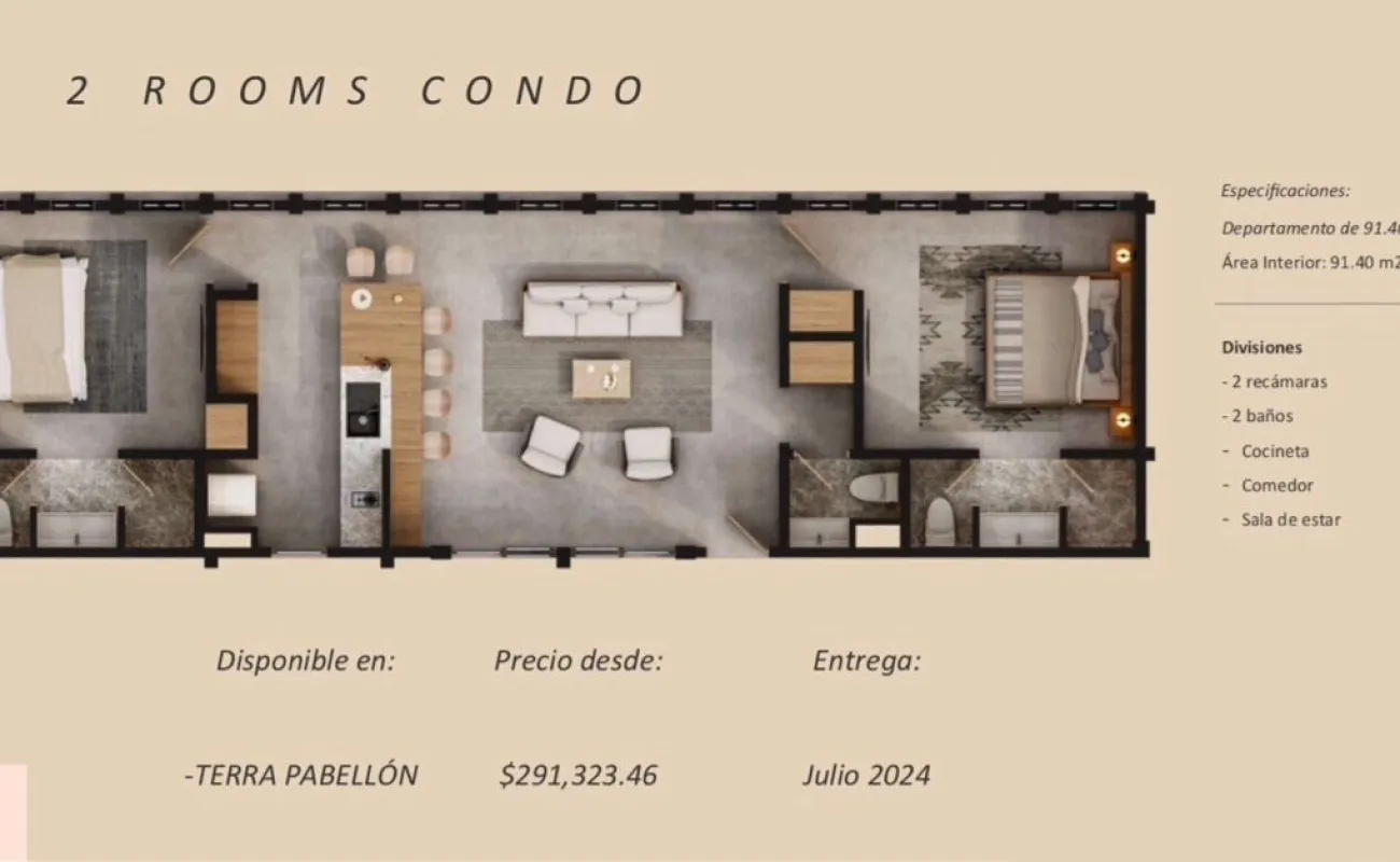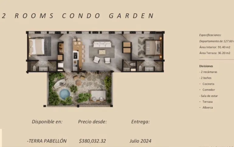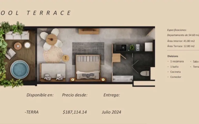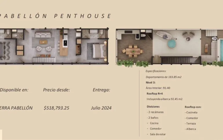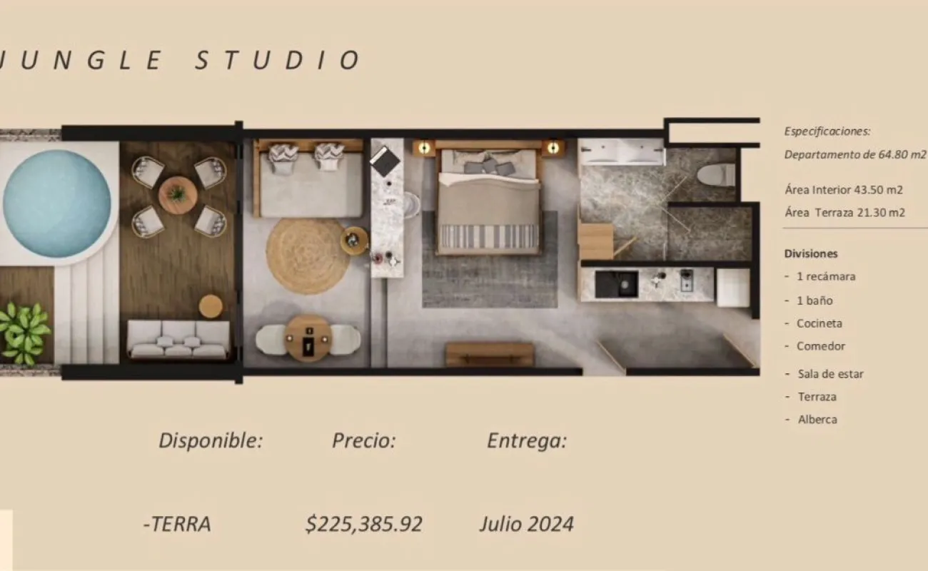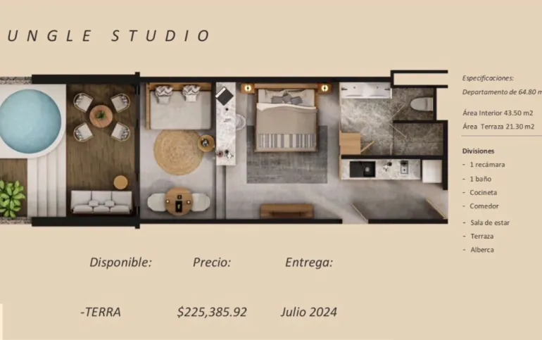 * TERRA Son 3 torres con 46 unidades, áreas privadas de swim ups y alberca cenote común. (Entrega Jul 2024)