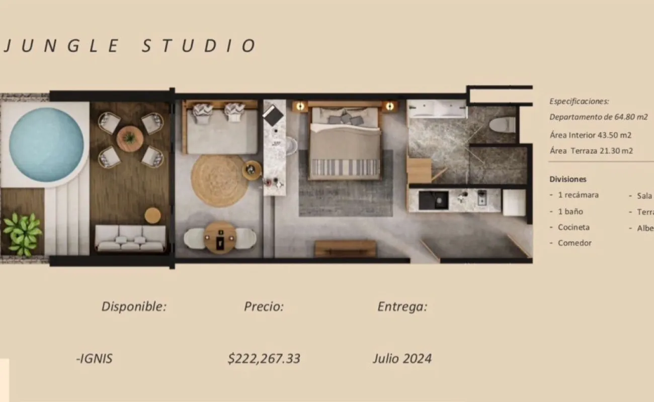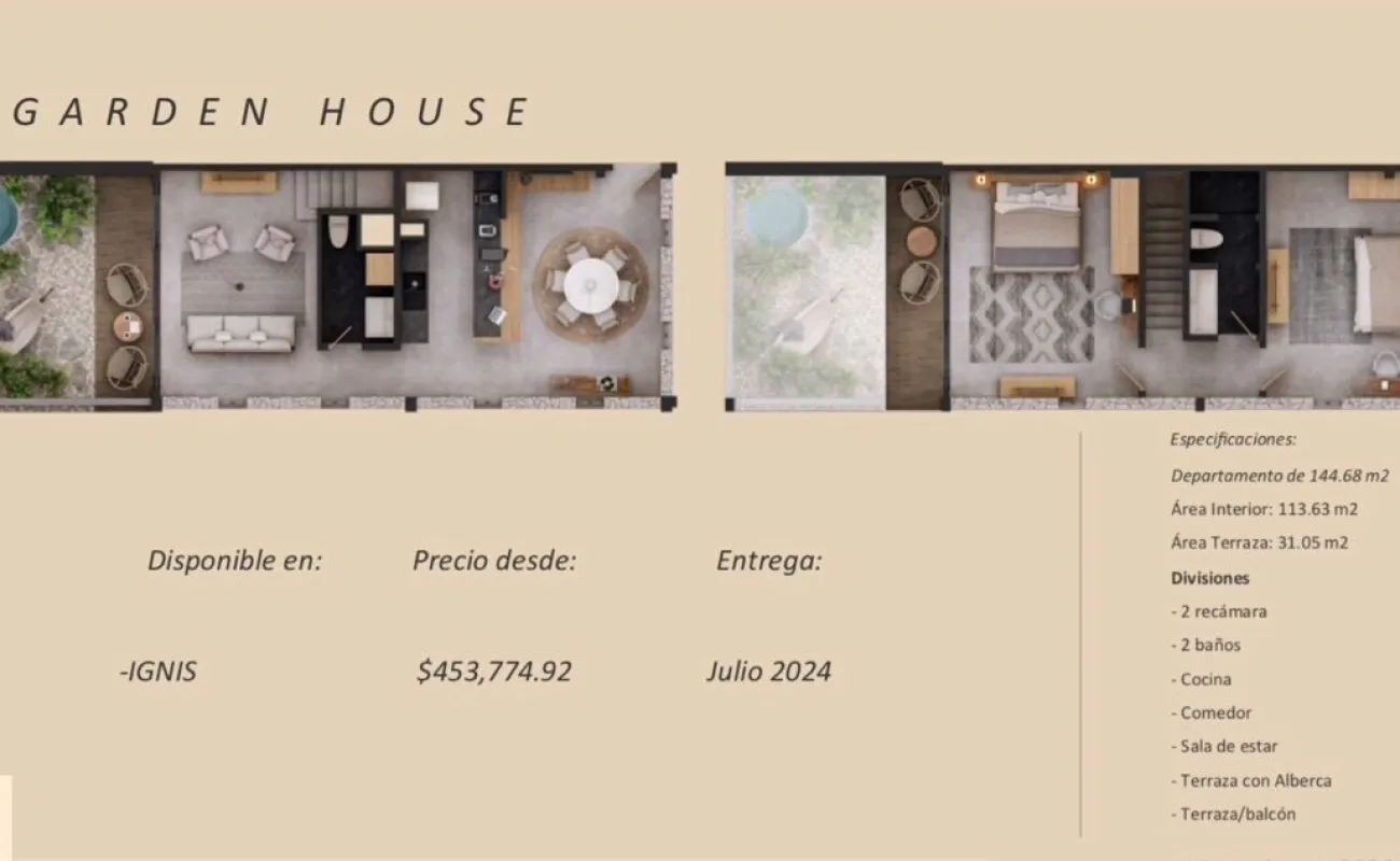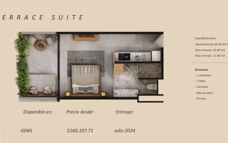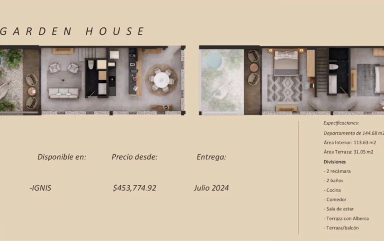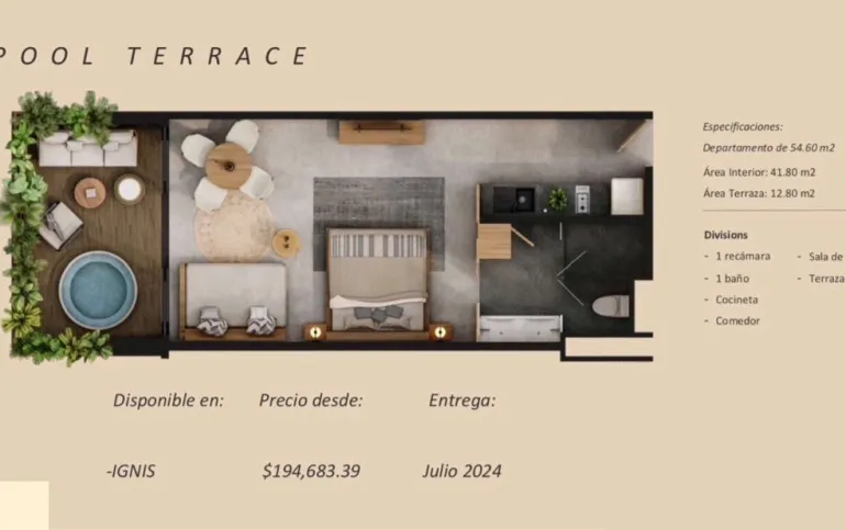 * TERRA Son 3 torres con 46 unidades, áreas privadas de swim ups y alberca cenote común. (Entrega Dic 2024)