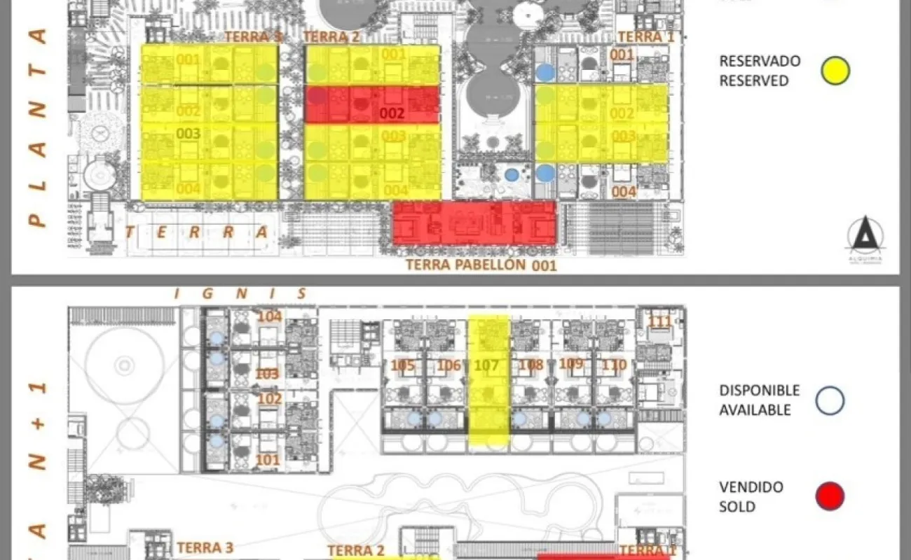Un hotel conformado por 4 secciones representando los cuatro elementos universales que dan nombre a sus edificios TERRA, IGNIS (fuego), CAELI (Cielo) y AQUA; un total de 153 Estudios y Suites con áreas comunes, amenidades y servicios.