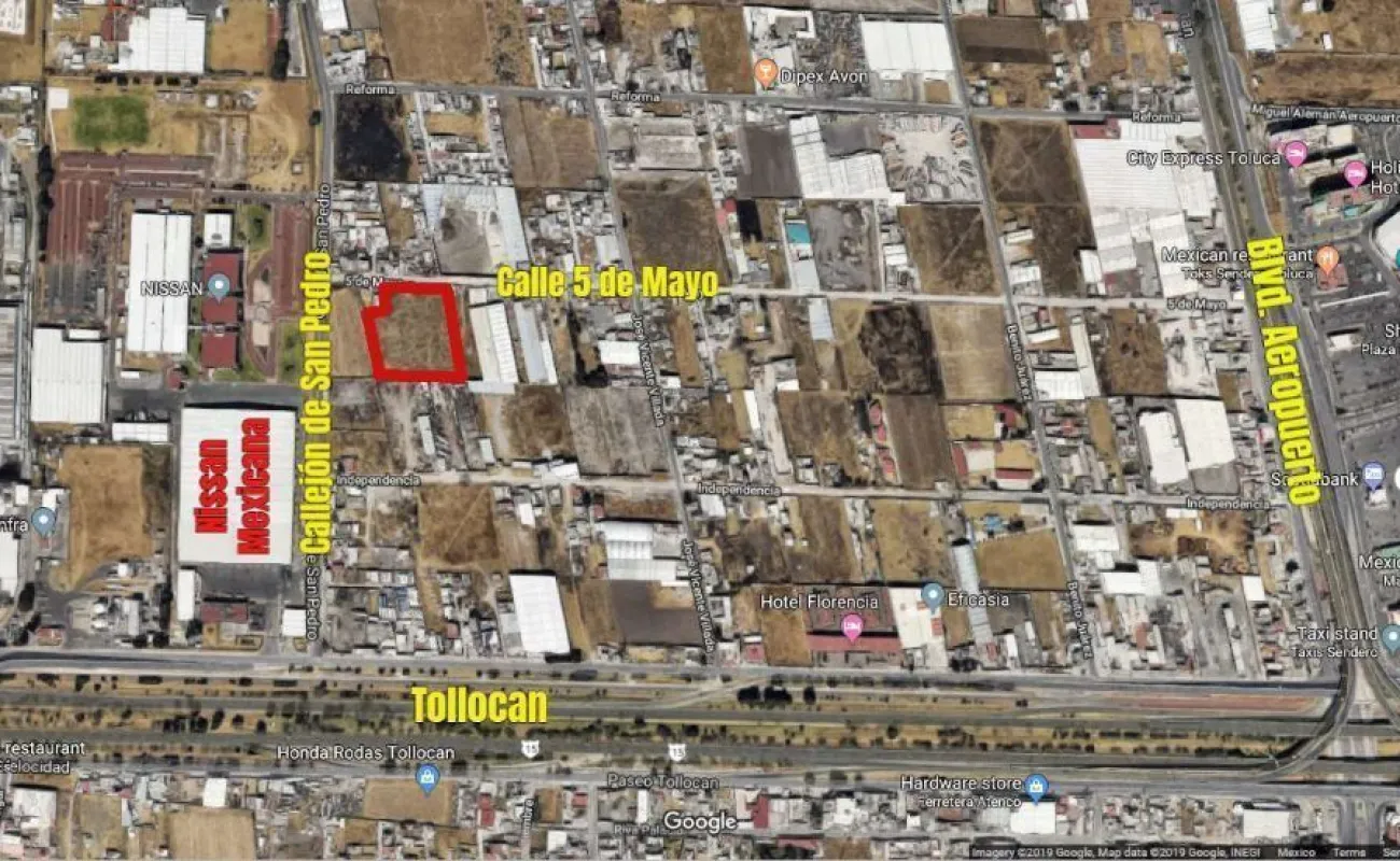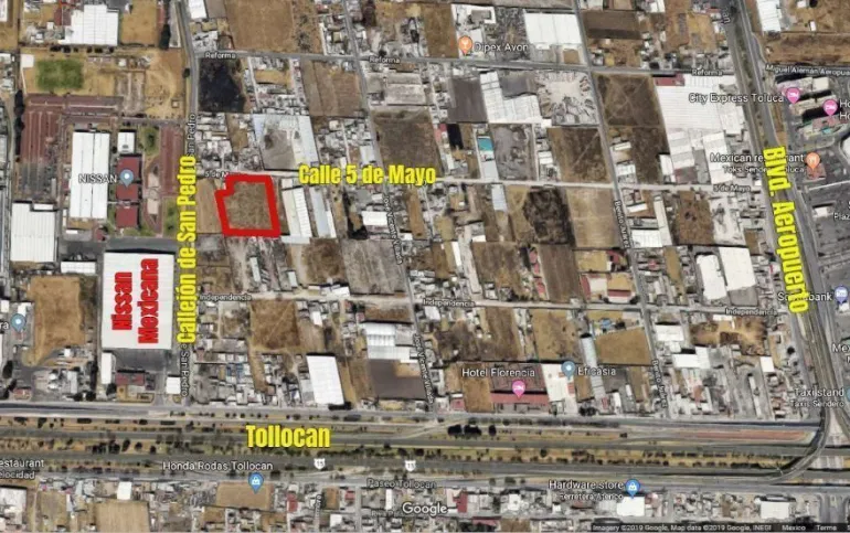 Vendo terreno de 9,990 m² bardeada, todos los servicios, muy cerca de Nissan Refacciones a un par de cuadras de Tollocan, con vialidades de fácil acceso. Queda a 10 mins de la terminal del Tren Suburbano. a 10 minutos del Aeropuerto de Toluca, a 45 minutos de Santa Fé.