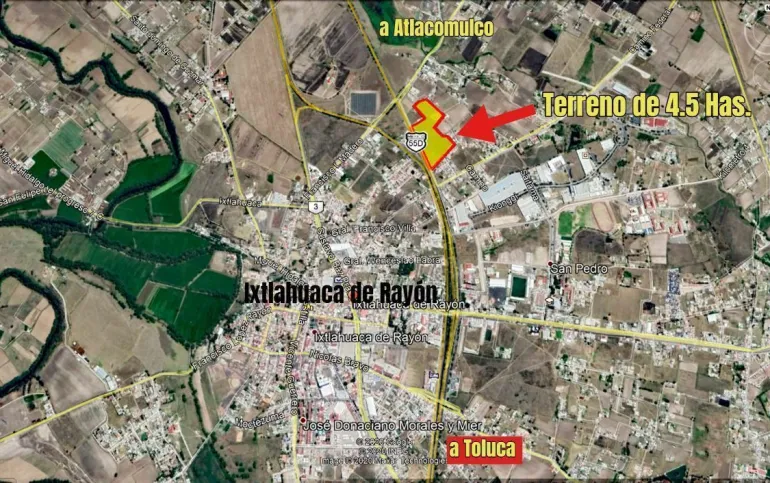 Vendo 45,407 m con 270 m de frente sobre la carretera Toluca - Atlacomulco y super ubicado. Excelentes vías de comunicación y rodeado de Comercios, Instituciones financieras, a 5 minutos del Centro Histórico y a 5 minutos del Centro Universitario de Ixtlahuaca.