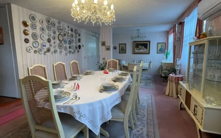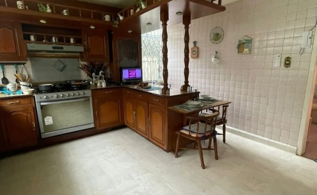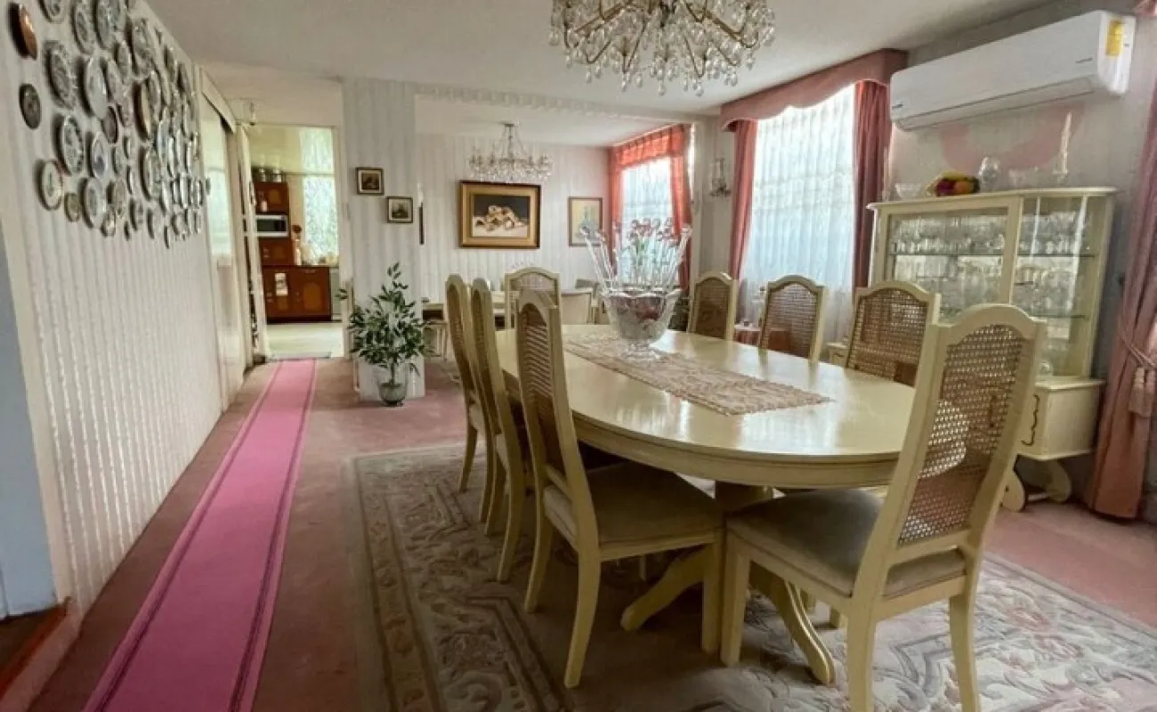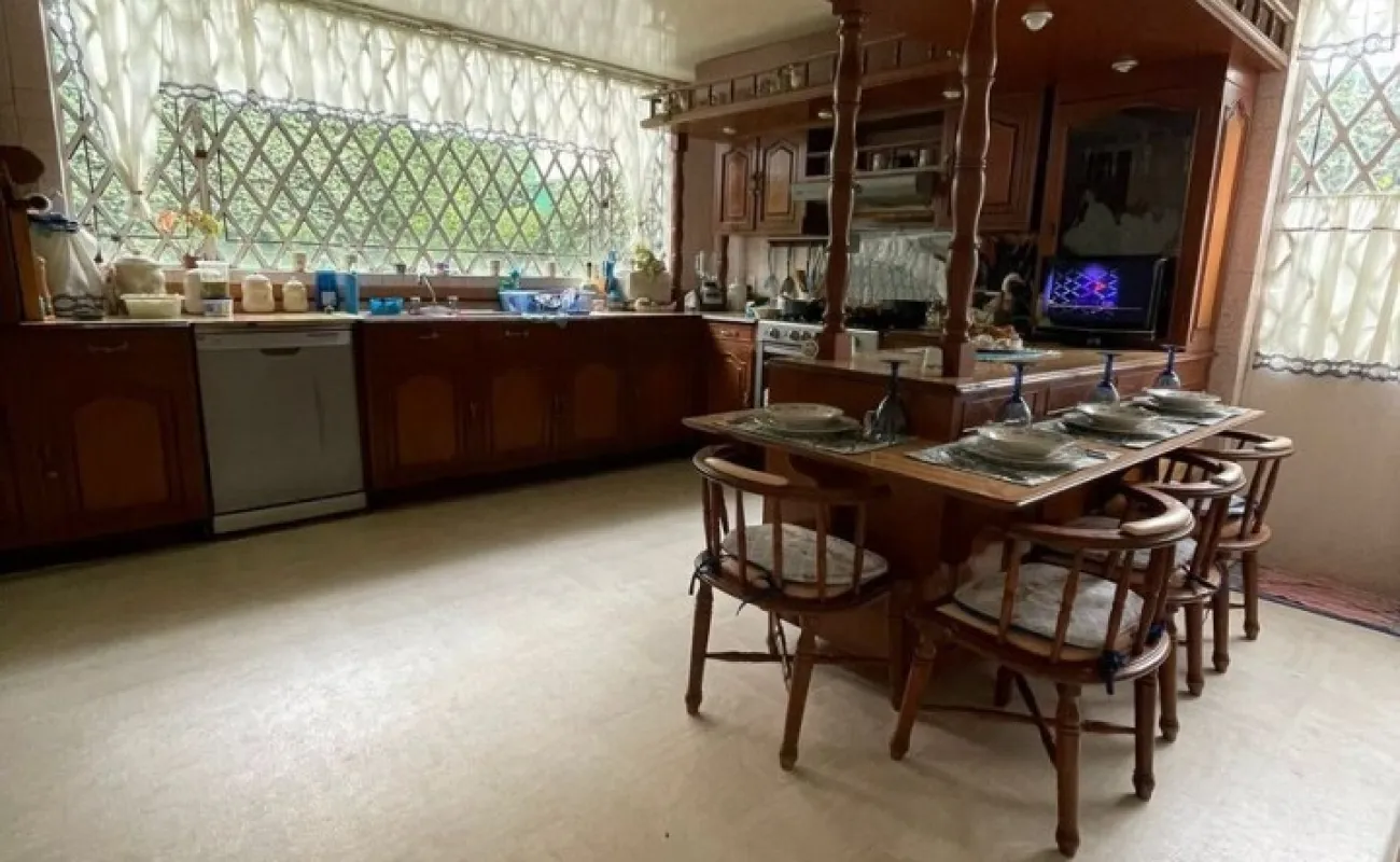 La propiedad cuenta con una cocina amplia, equipada con barra para desayunador y excelente distribución con una area de antecomedor inmediata al amplio comedor que tambien cuentan ambos espacios cocina y comedor con aire acondicionado ( minisplits). Desde la cocina se accede a una escalera interna de servicio que conduce directamente al área de lavado y al cuarto de servicio con baño completo , ofreciendo practicidad y funcionalidad sin interferir con las áreas sociales y familiares.