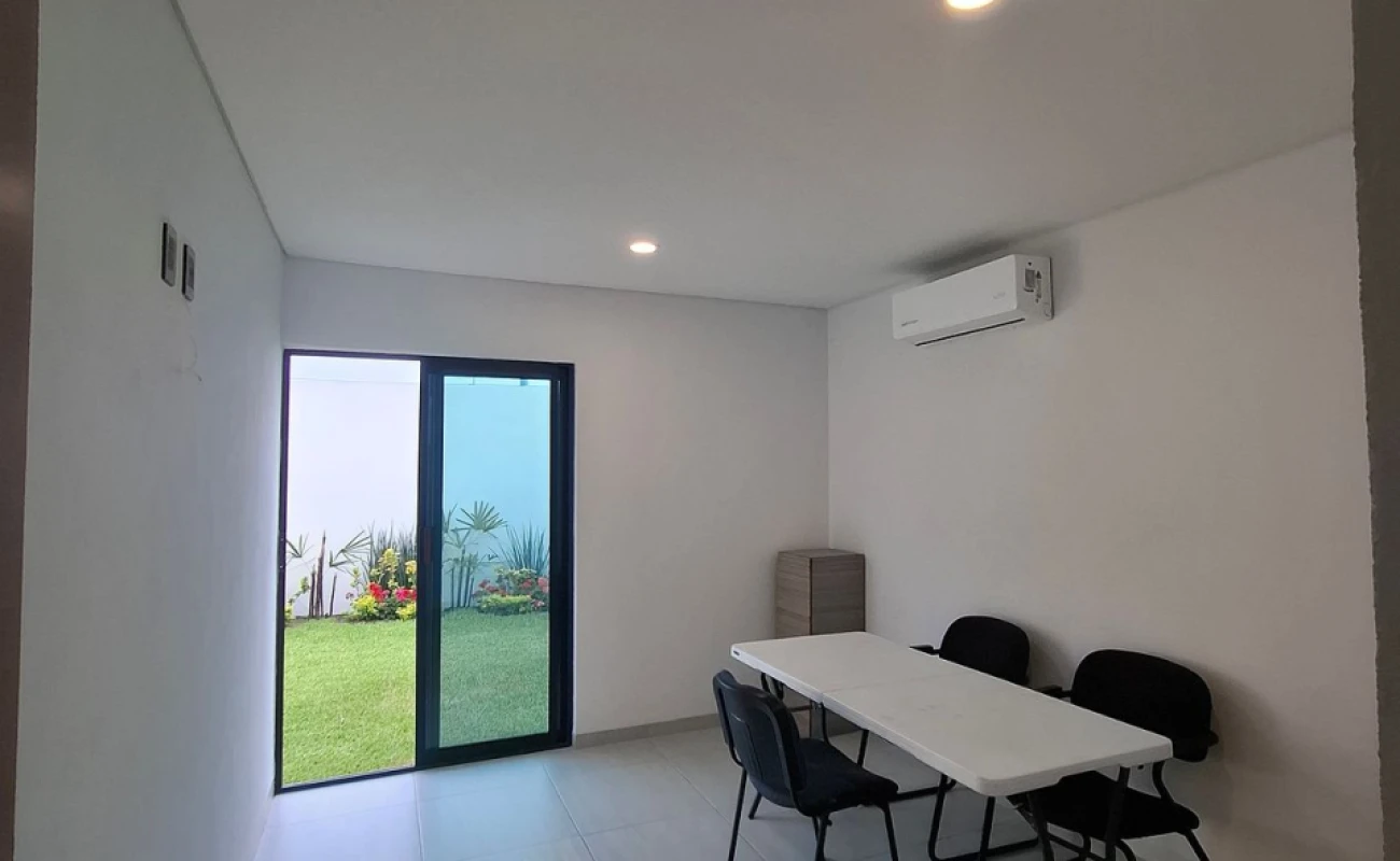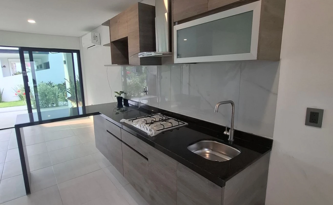 En planta baja encontrarás un ambiente abierto y acogedor con sala-comedor, cocina integral equipada con barra de granito, parrilla, campana y tarja, además de una recámara o estudio, baño completo, patio de servicio, jardín trasero y una agradable terraza que amplía tu espacio de convivencia.