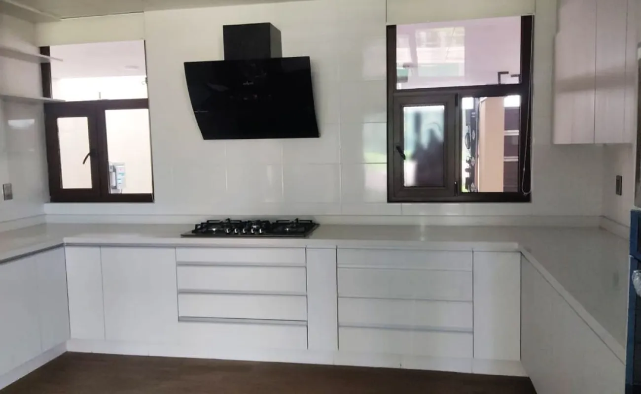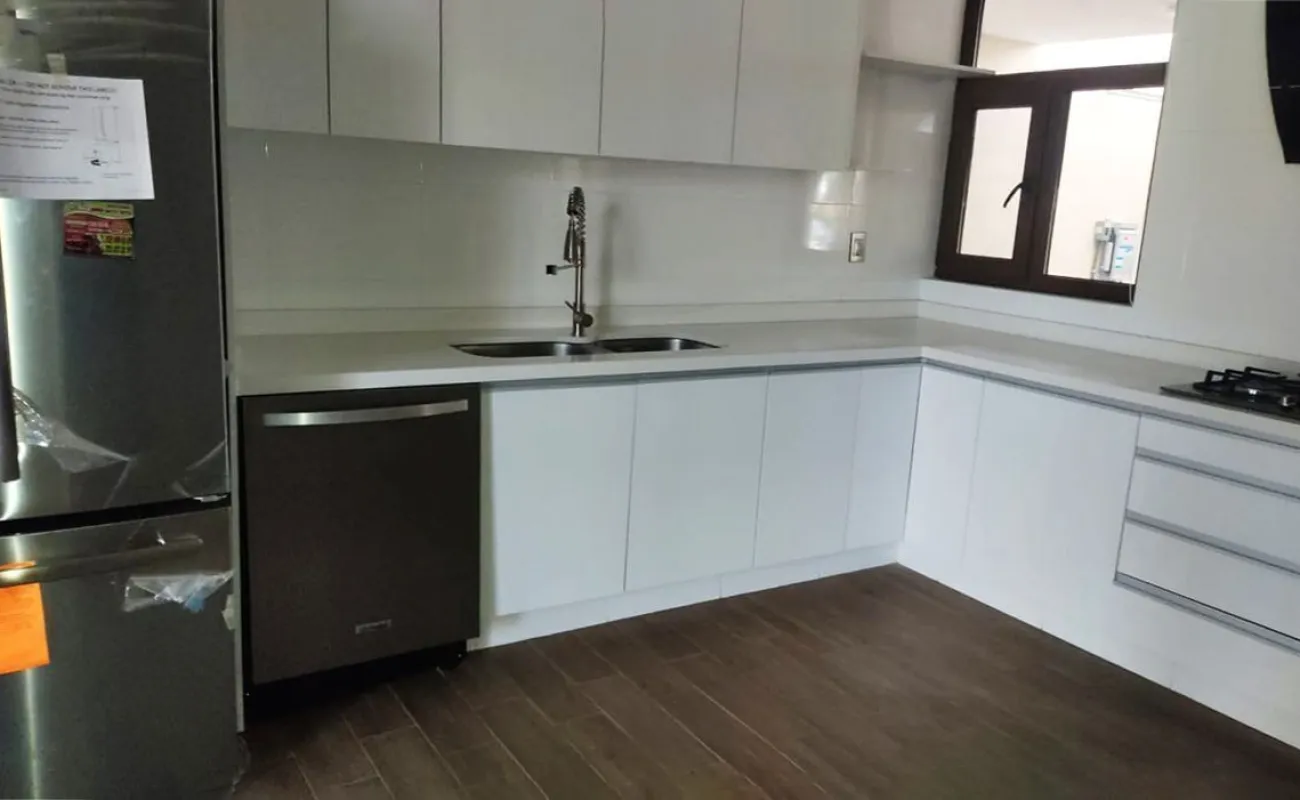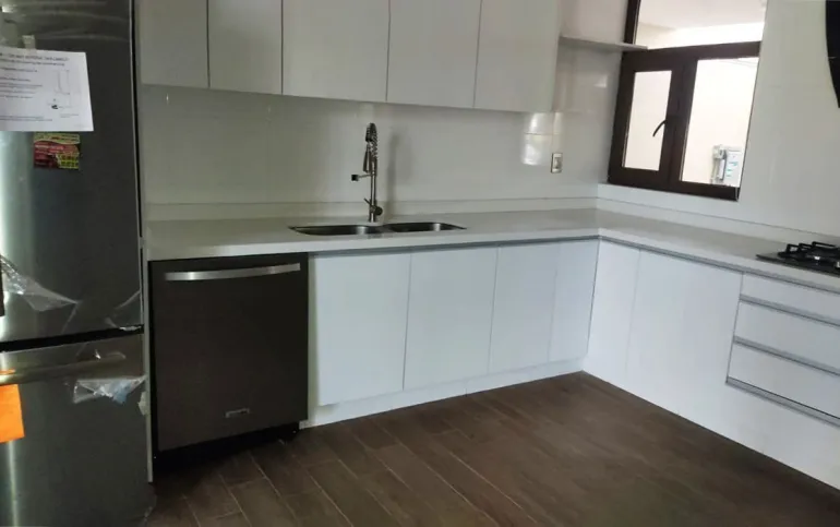 Estacionamiento para 3 autos. pueden ser camionetas grandes, techado y con portero eléctrico independiente, hermosa sala, comedor con gran chimenea, hermoso jardín, amplia cocina con desayunador en color blanco de granito con lavavajillas, refrigerador, microondas integrado, horno convencional y área de servicio con cuarto de lavado y planchado y cuarto de servicio con baño.