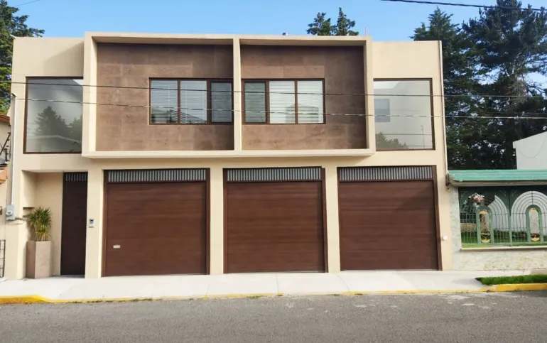 La recamara 2 con closets y baño, recamara 3 con closets y baño completo , sala de tv . La casa cuenta con toda la ventanería tipo europea de PVC con vidrio doble, lo cual la hace muy térmica. Los baños están forrados de piso a techo y tiene acabados de primera calidad.