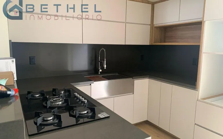 Cocina equipada, de diseño funcional, integrada al área social para mayor comodidad.