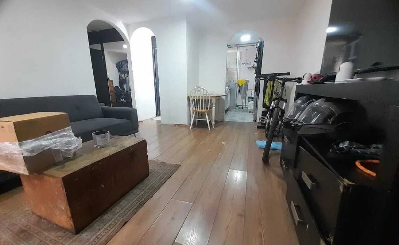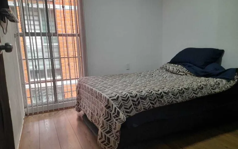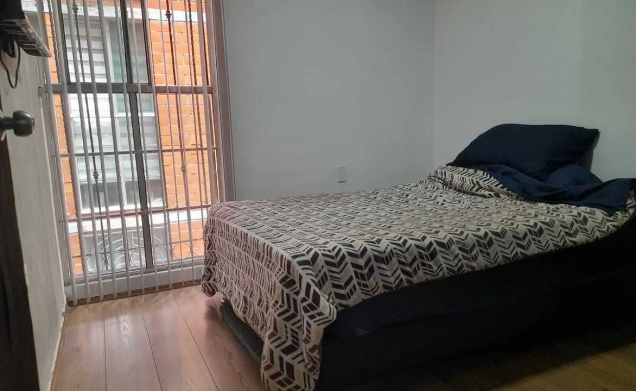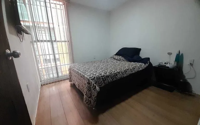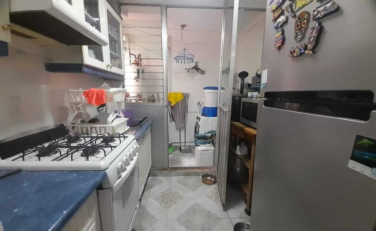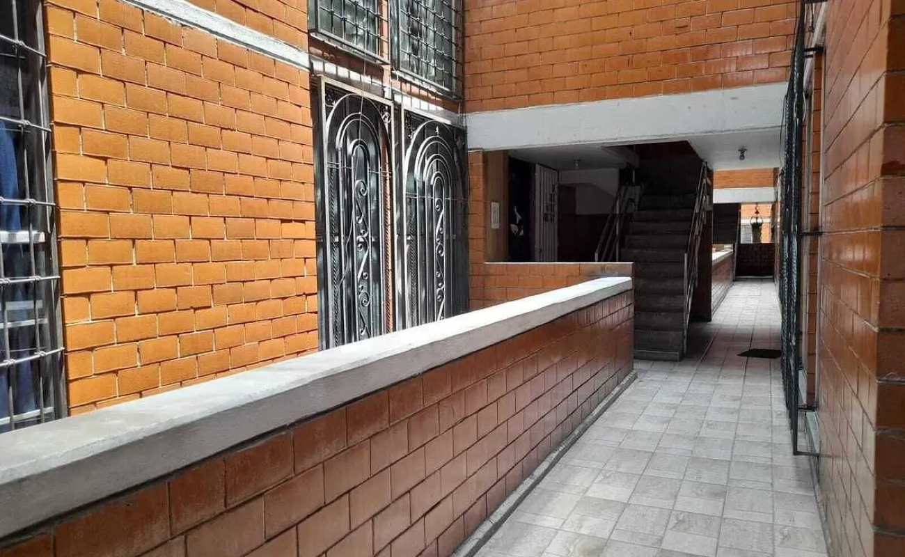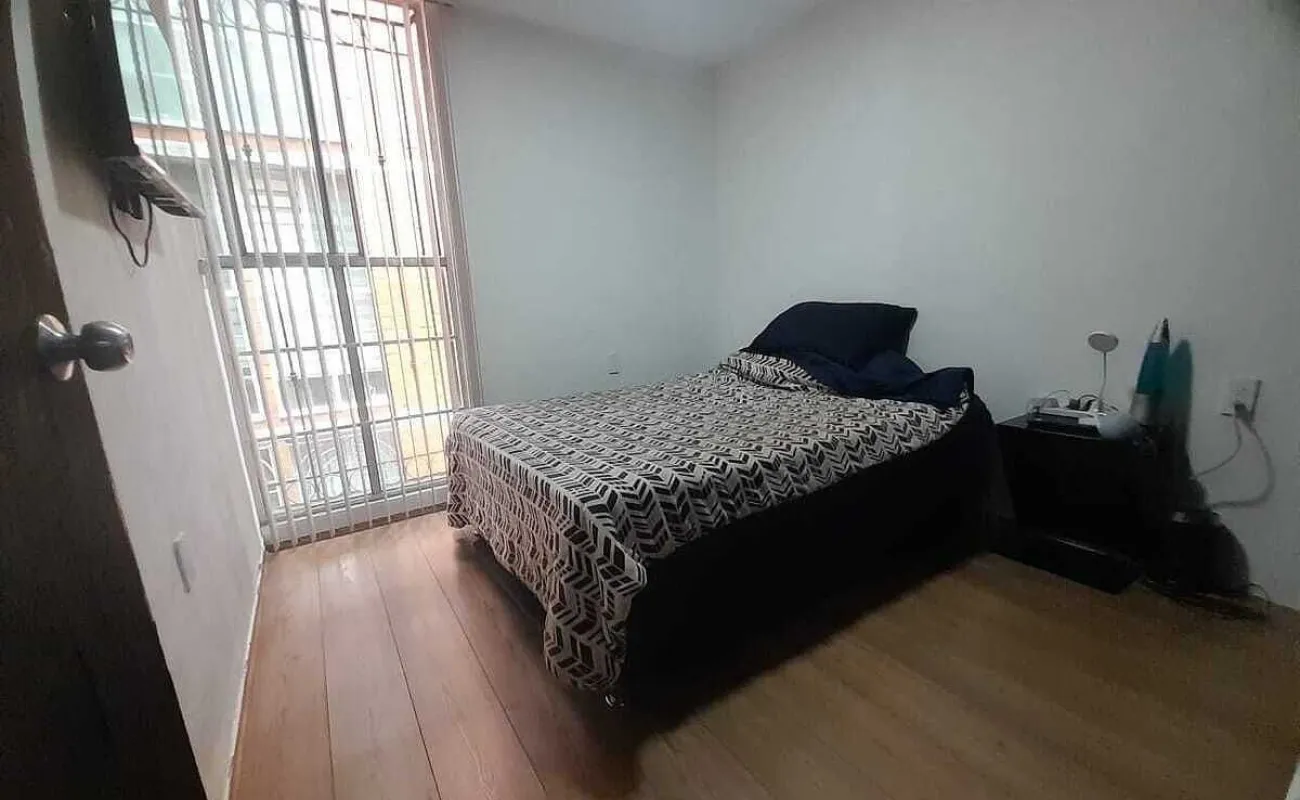 Cómodo e iluminado departamento en segundo piso: dos recámaras, un baño, sala-comedor, lavandería, un estacionamiento, vigilancia 24 horas.