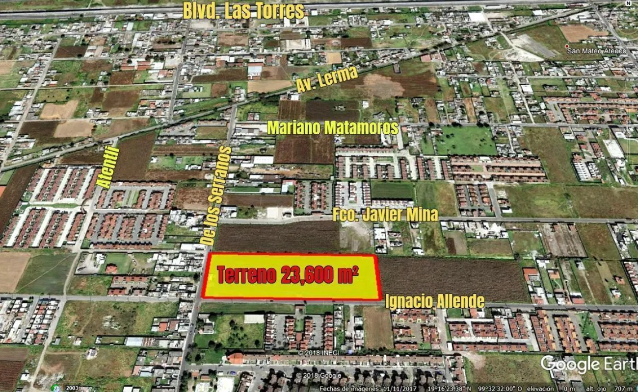 Vendo hermoso terreno rectangular de 23,900 m en la zona de crecimiento habitacional en San Mateo Atenco. Con rápida salida a Av. Lerma que es la que lleva hacia Av. Las Torres y hacia la Carretera Toluca - México. También tiene rápida salida hacia Toluca y hacia el Aeropuerto.