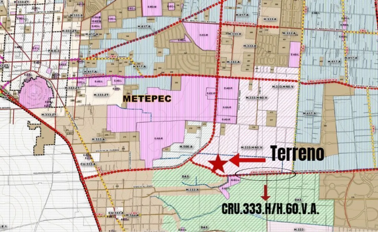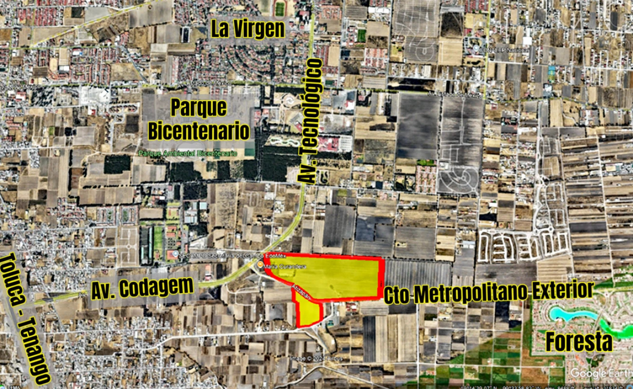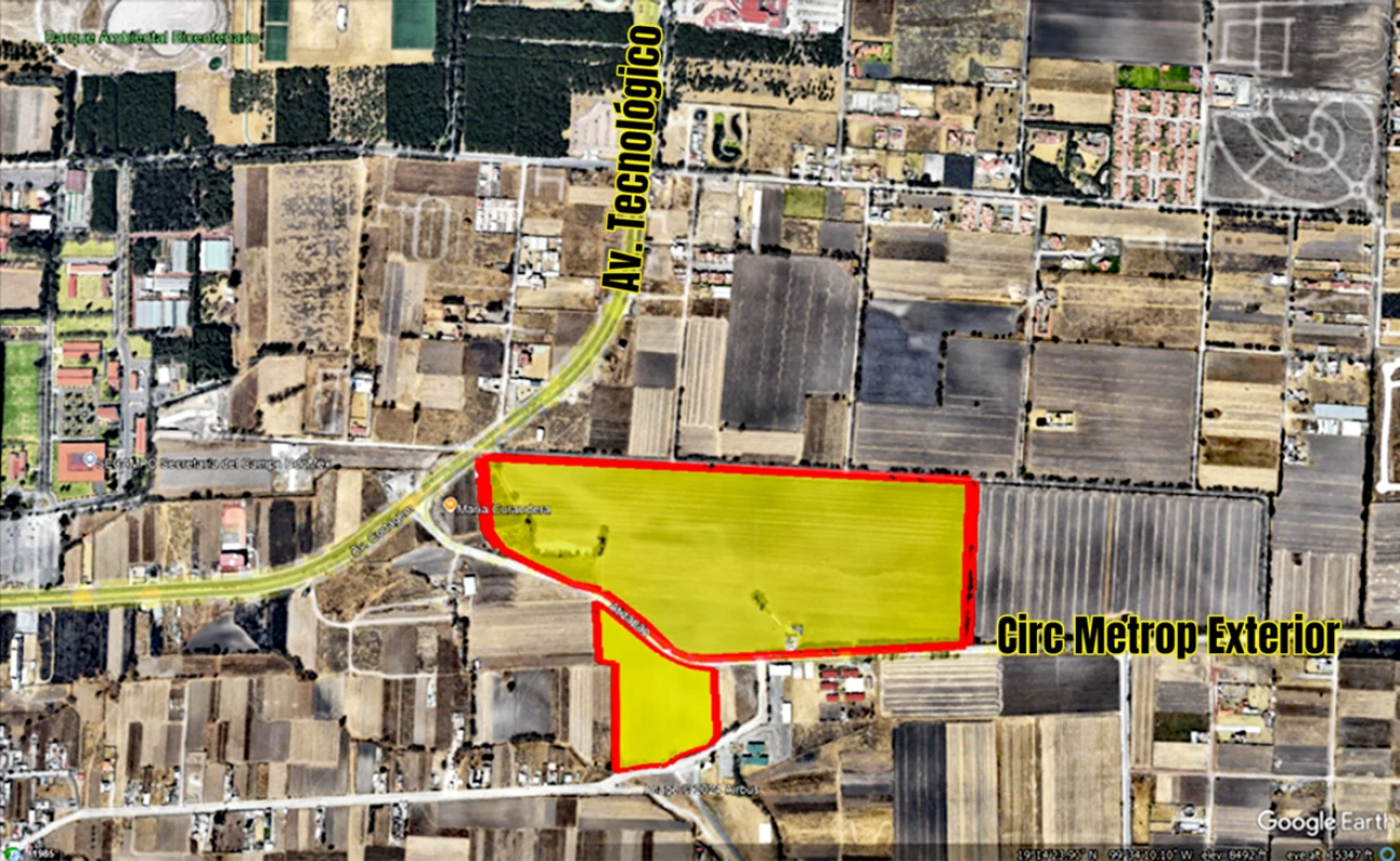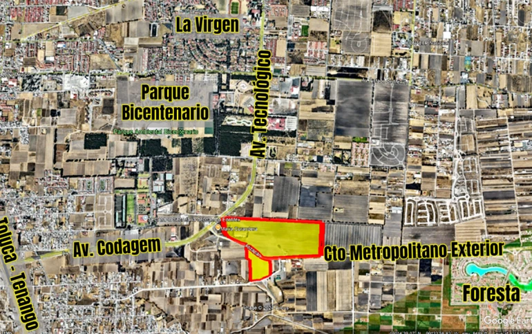 Insuperable ubicación tiene este terreno de 255,000 m² con 2 frentes en Tecnológico y por Circuito Metropolitano Exterior. Una zona cercana a fraccionamientos de primer nivel, comercio, las mejores escuelas, bancos, restaurantes, vías rápidas de salida hacia México y Toluca. Es la zona de crecimiento de Metepec. Con 660 mts de frente sobre Circuito Metropolitano Exterior.