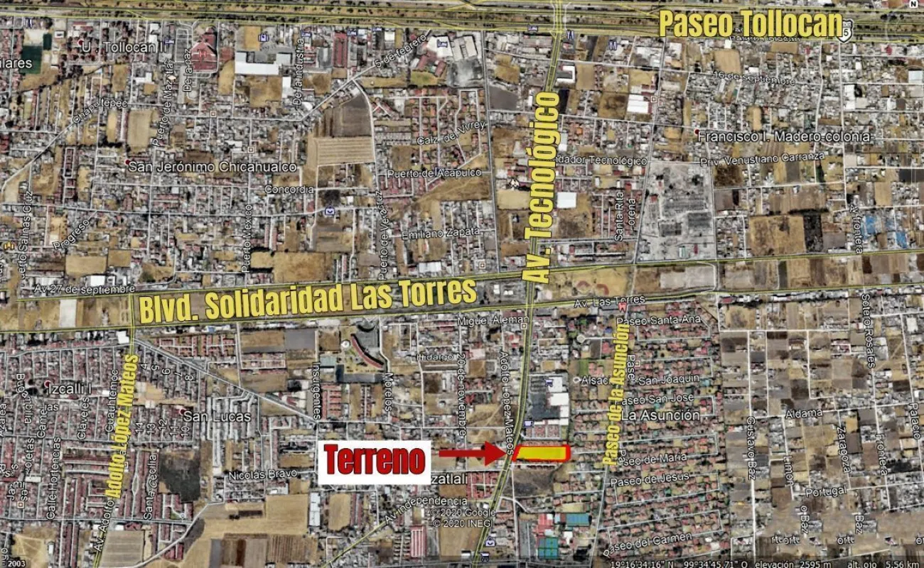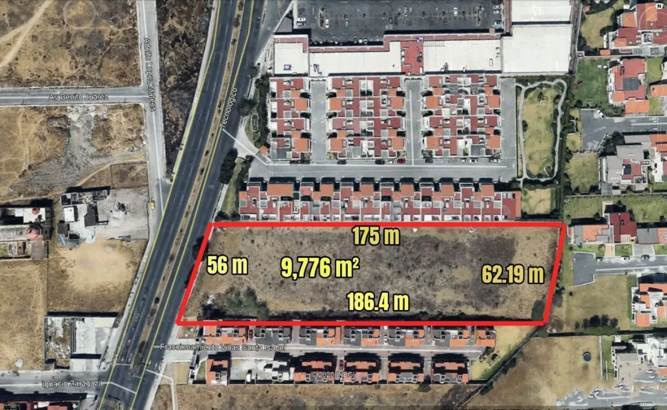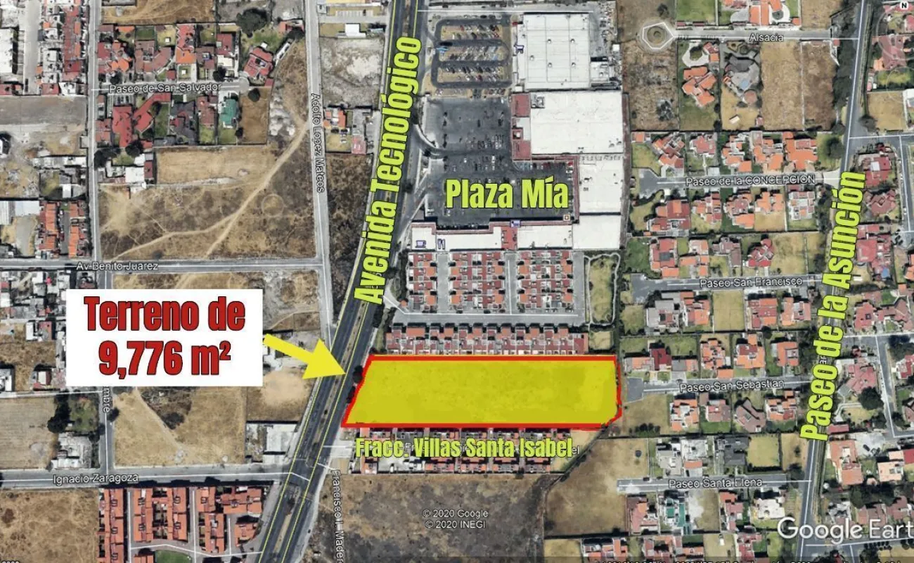 El terreno se ubica en Avenida Tecnológico que es una Avenida muy comercial, llena de Comercio, Plazas Comerciales, Restaurantes, Bancos, Farmacias, Escuelas, Gimnasios, y grandes fraccionamientos alrededor.