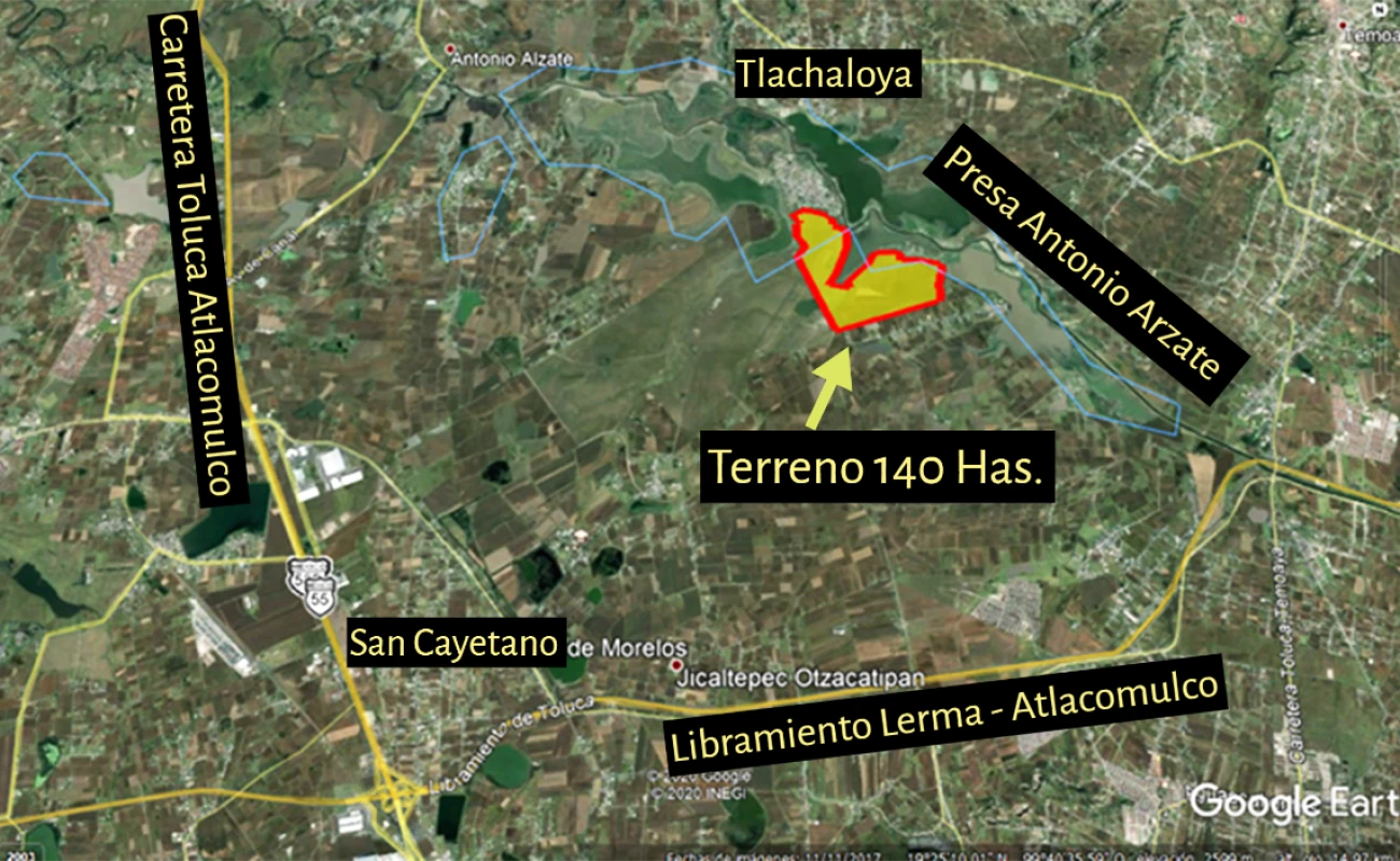 Vendo 146 hectáreas preciosas, colinda con la presa Antonio Alzate y a la población de Tlachaloya. Totalmente plano. Llega carretera asfaltada hasta el terreno.