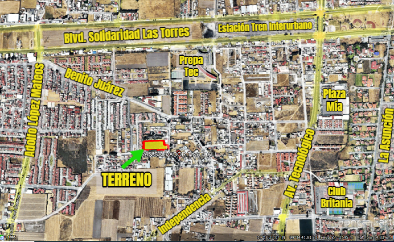 Este terreno de casi 5,000 m, tiene una ubicación de primera. Muy cerca de 3 Avenidas de rápida circulación y movilidad, como son Av. De Las Torres, Av. Adolfo López Mateos y Av. Tecnológico. Por lo que tiene rápida salida a la CDMX y a Toluca. Cerca de la zona comercial de Metepec que es Tecnológico, donde encontrará una gran variedad de Comercios, Plazas Comerciales, Bancos, Restaurantes, Gimnasios, la nueva Mega, etc.