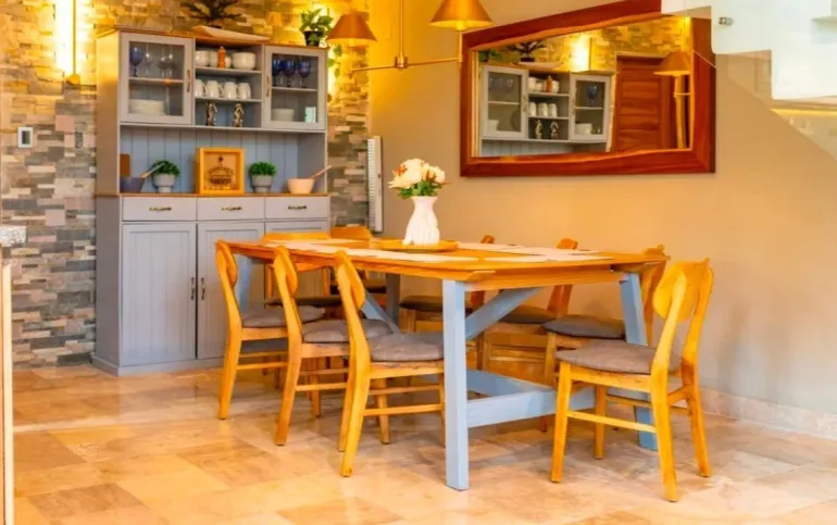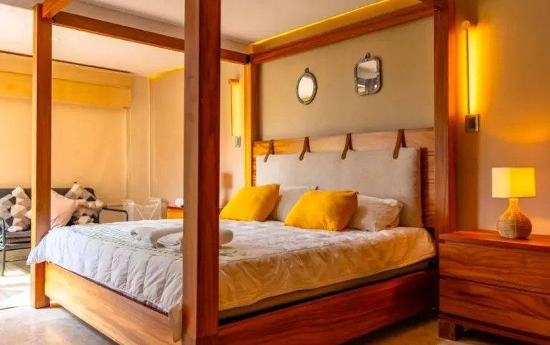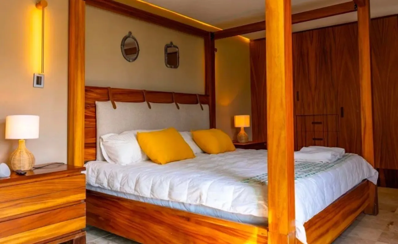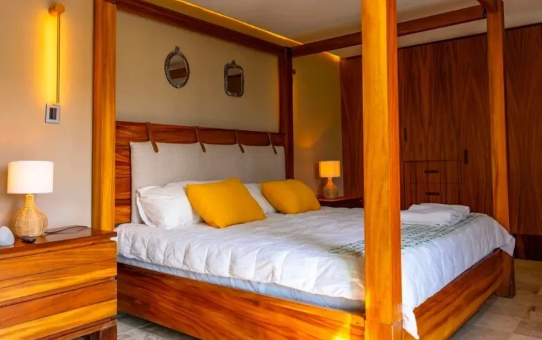 Toda la casa tiene muebles y puertas de parota