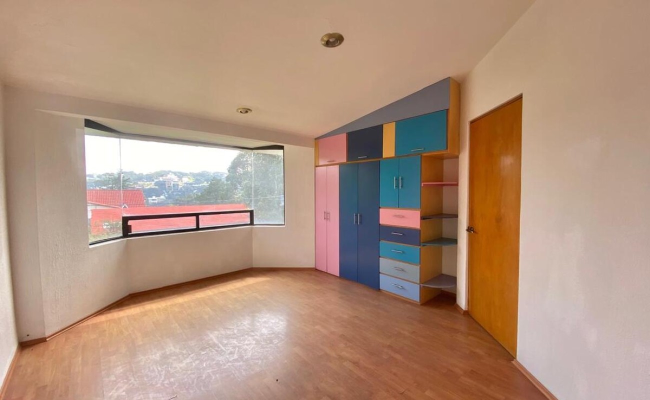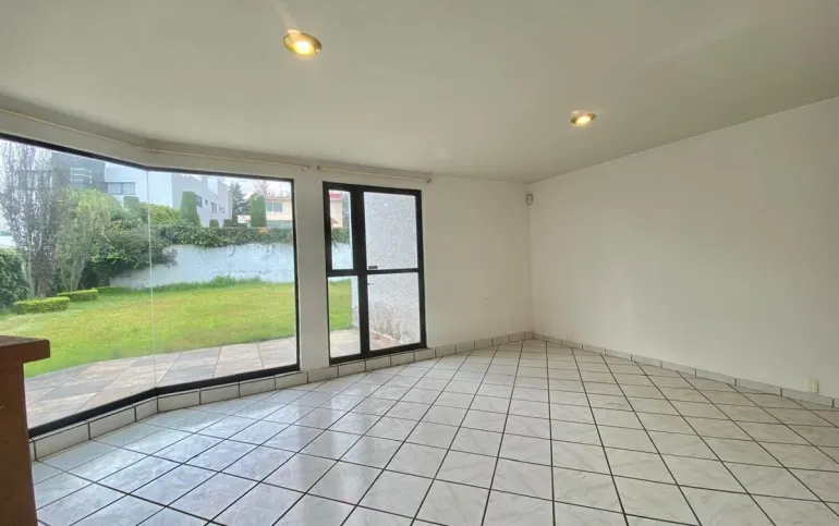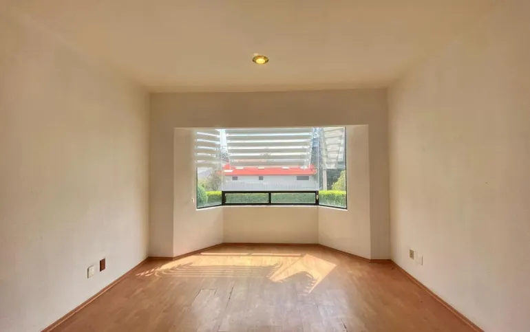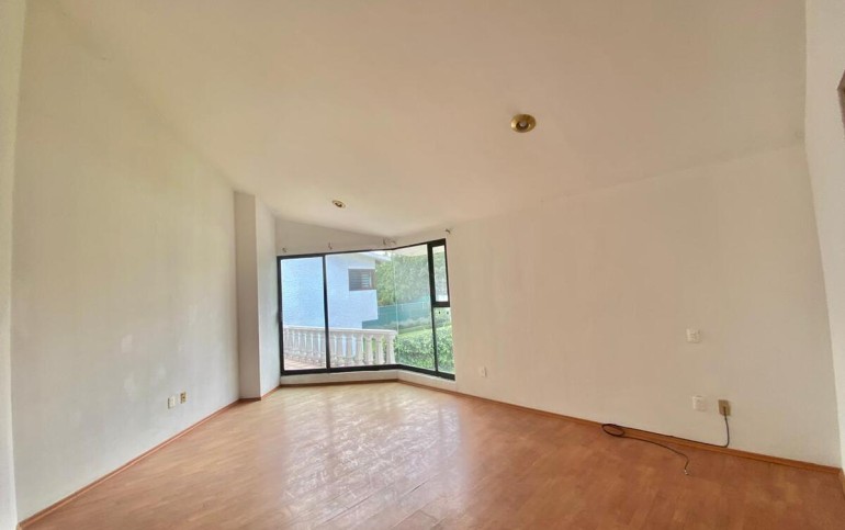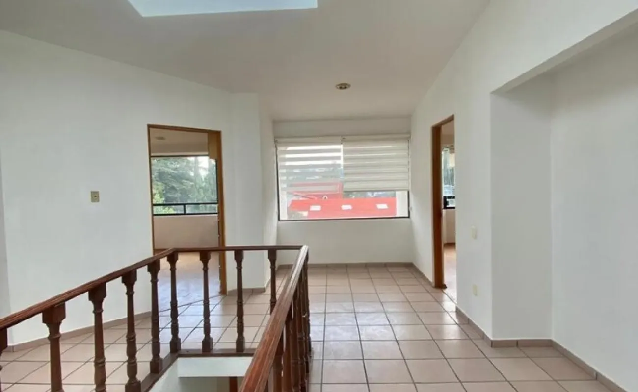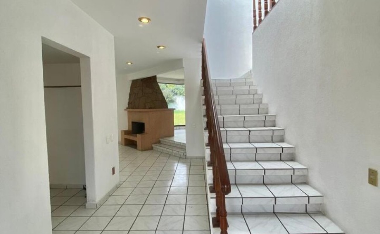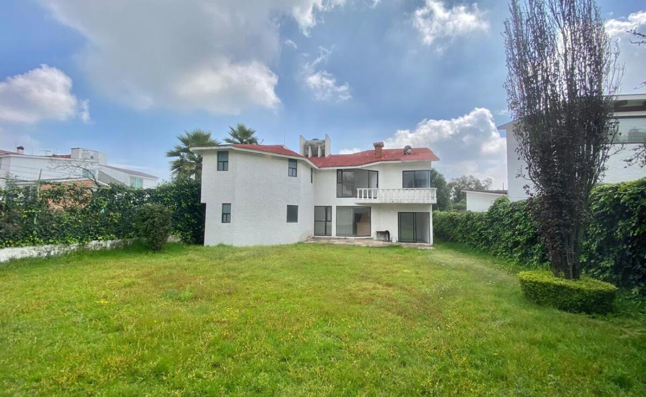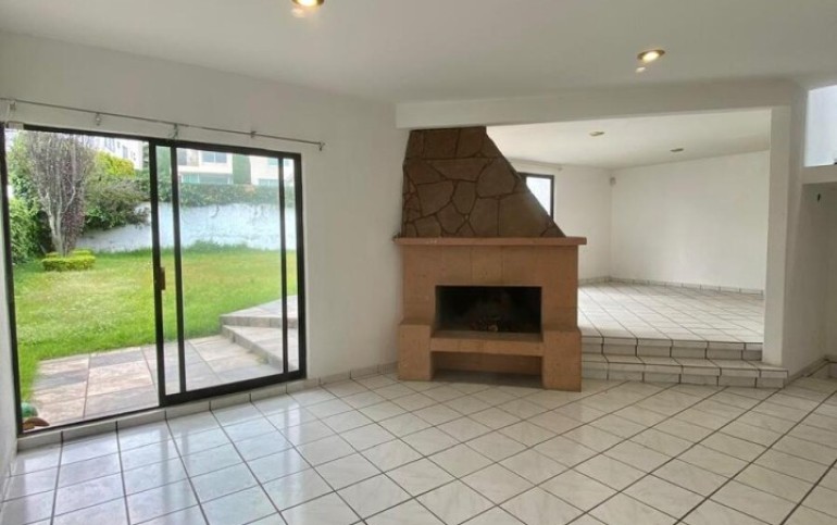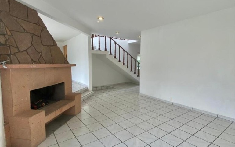 Casa de 648 m² de terreno y 316 m² de construcción con 4 habitaciones y 3 baños completos, sala de TV, estudio y una recámara principal con balcón y vista al jardín. Chimenea.