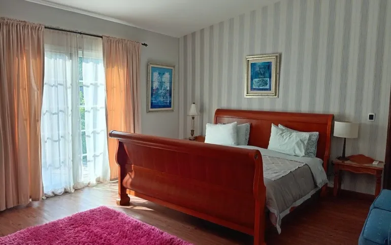 - Master suite, con vestidor, baño de mármol y acceso directo al gimnasio