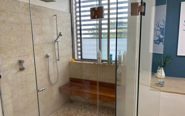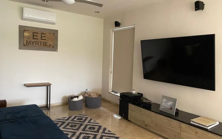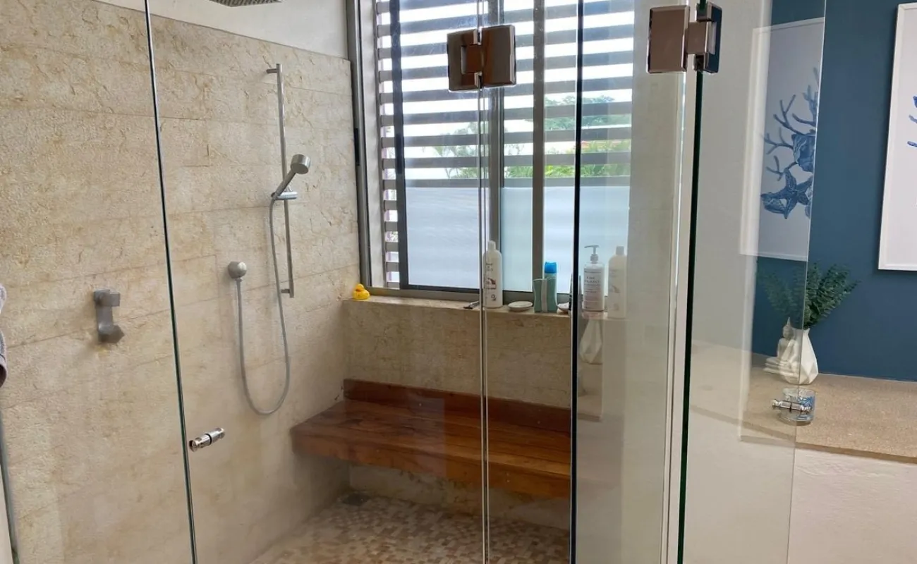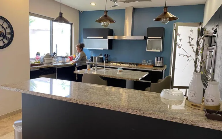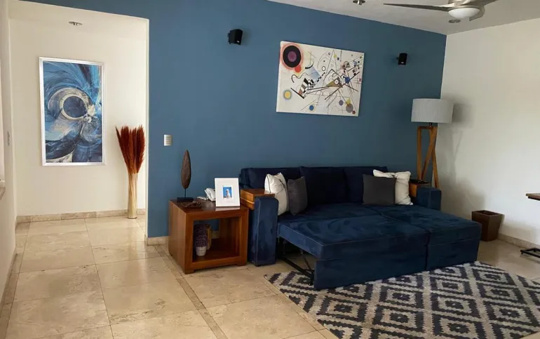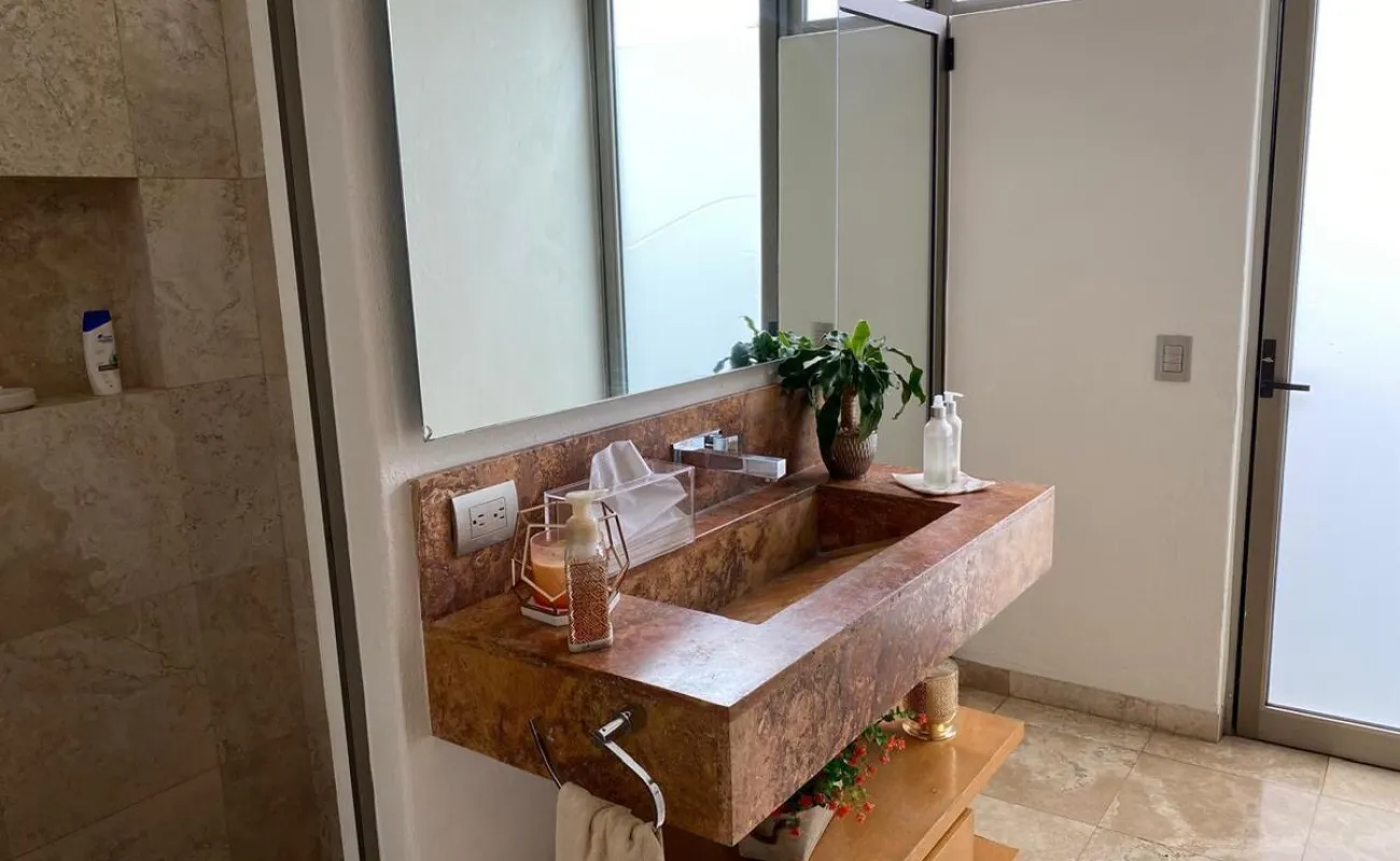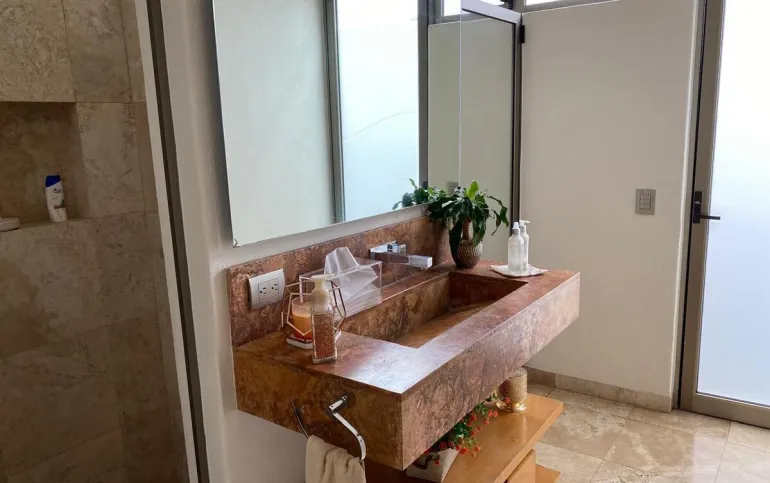 La casa cuenta con 3 recámaras, cada una con baño completo y family room.