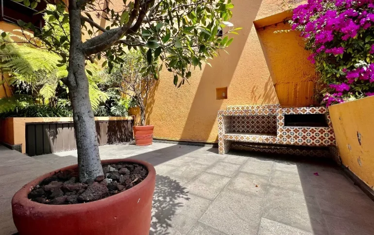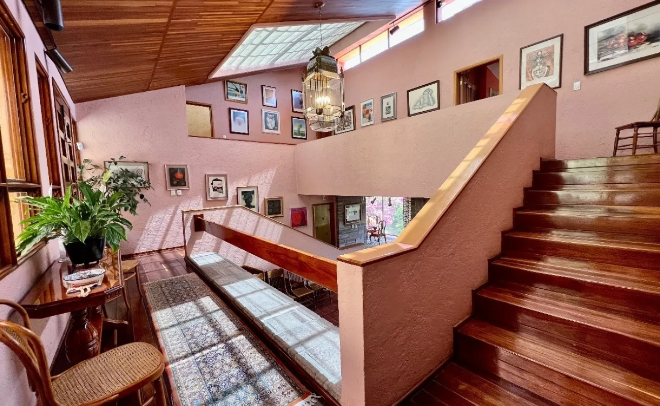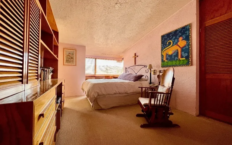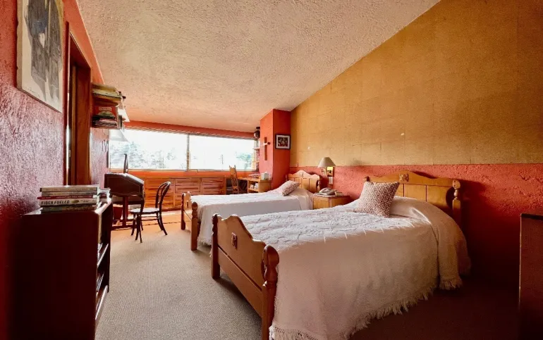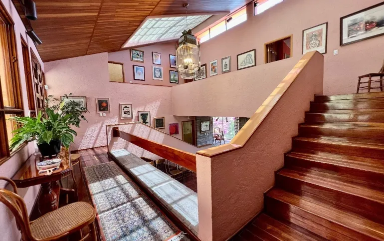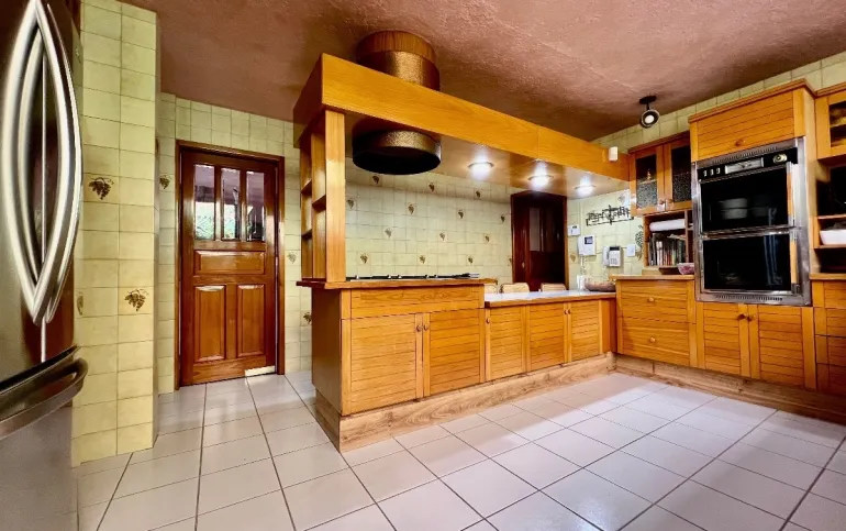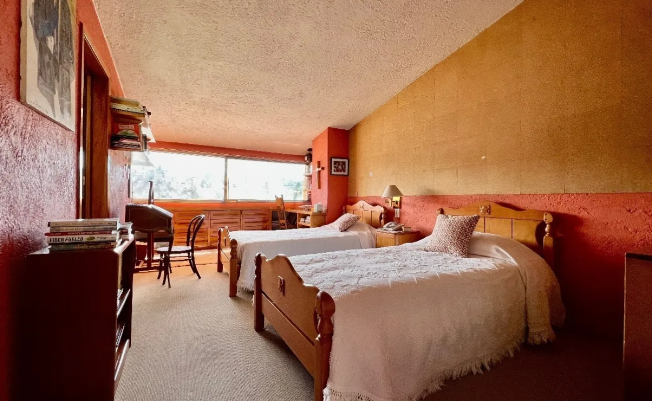 Preciosa casa en la Herradura muy iluminada con ventana que dan a una vista increíble al bosque. Cuenta con sala con chimenea muy acogedora, ,comedor y una sala secundaria con vistas espectaculares al jardín. Dos preciosos jardines de 100m2 aproximadamente con riego de aspersión y un medio baño en el jardín. Cuenta con un agradable family y oficina Cocina, cuarto de servicio y cuarto de lavado amplios. Consta de 4 recámaras, la principal con vista al jardín con techos altos, increíbles vigas de madera, baño completo y walking closet. Las demás recámaras tienen baño completo y closet. Garage techado, dos bodegas, paneles solares, sistema de alarma, bomba hidroneumática. La casa está súper bien conservada, con excelentes acabados, pisos de duela de madera.