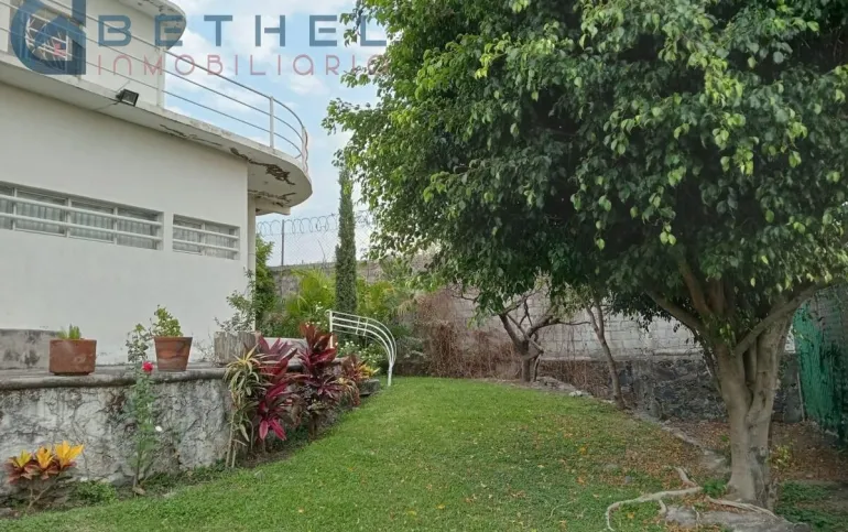 Jardín arbolado y cuidado, con espacio ideal para alberca.