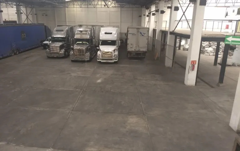 Dos entradas para tráiler en avenida principal y una trasera para vehículos medianos. Cuenta con tapancos de alta resistencia en concreto de 350 m2 aproximadamente.