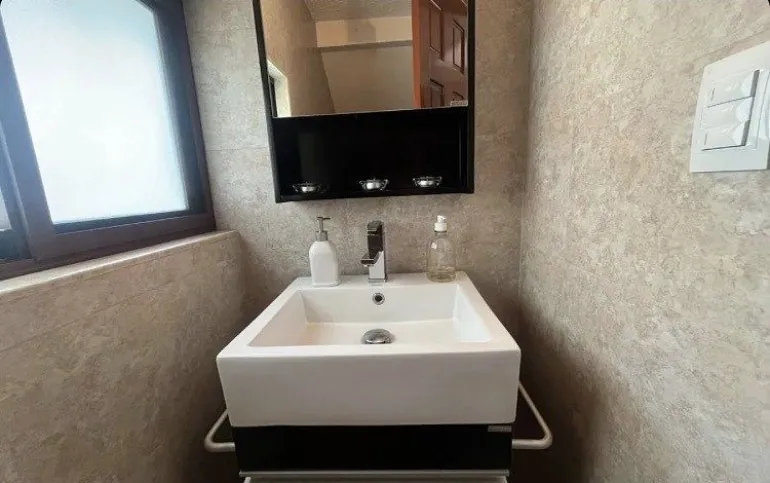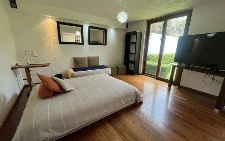 En la planta alta está el salón familiar y tres recámaras: dos comparten baño y la principal tiene vestidor y baño privado.