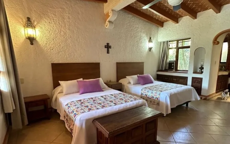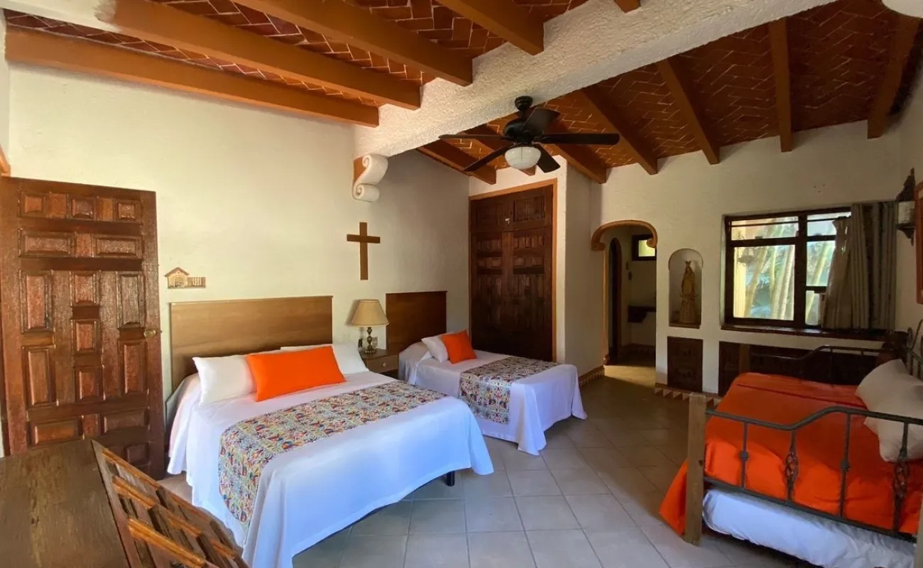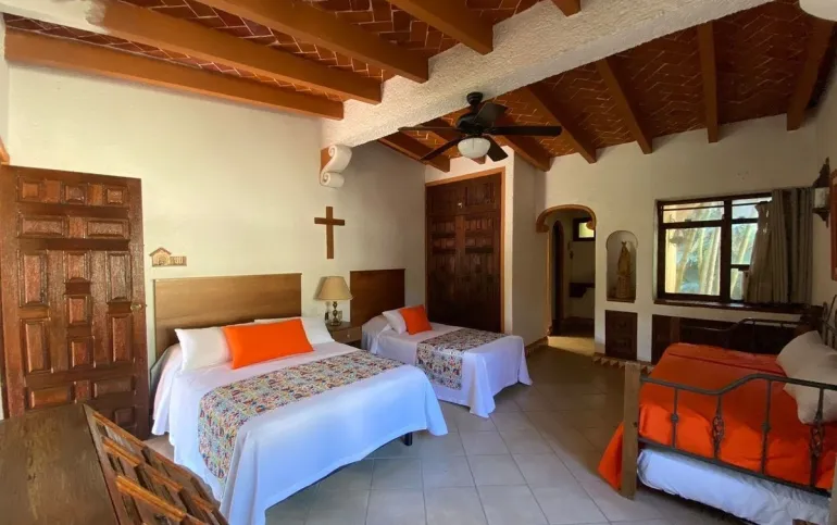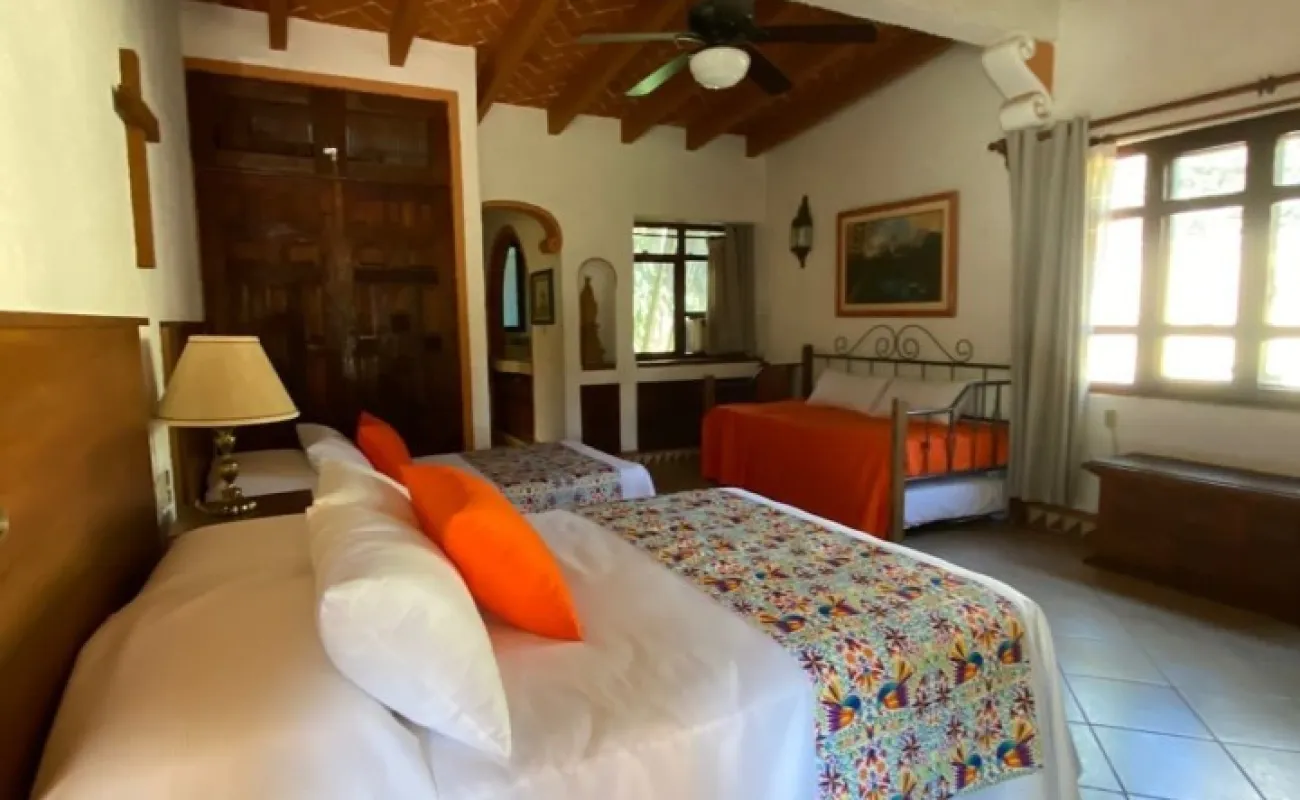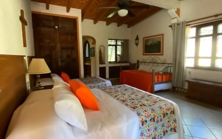Información detallada de la casa: Terreno: 2,564.25 m2 Construcción: 753. m2 Antigüedad: 33 años -Habitaciones: 7 Detalles de habitaciones: Habitación Principal: 1 cama King size. 2 personas máximo. Habitación 2: 4 camas individuales. 4 personas máximo. Habitación 3: 1 cama Queen size y 2 camas individuales 4 personas máximo. Habitación 4: 2 camas matrimoniales y 1 cama individual. 5 personas máximo. Habitación 5: 2 camas matrimoniales y 1 cama individual. 5 personas máximo. Habitación 6: 1 cama Queen size y 3 camas individuales. 5 personas máximo. Habitación 7: 2 camas individuales. 2 personas máximo. *Todas las habitaciones cuentan con baño completo y calentadores de paso independientes. -Baños completos: 10 baños -2 1/2 baño : Medio baño de servicio en terraza y en zona de salón de juegos. -Vestidor con baño completo. -Cocina equipada: refrigerador, lavatrastes micro-ondas -Capilla. -Alberca y chapoteadero con calentador solar -Jacuzzi para 10 personas con calentador -Sala con TV. -Comedor para 12 personas. -Terraza con 2 mesas para 18 personas en total. -Asador -Cuarto de juegos-Cantina con Billar y Futbolito con medio baño. -2 bodegas -Estacionamiento descubierto para 10 autos -Cuarto de máquinas -2 Cuartos de veladores -Árboles frutales -Heladería -Callejones y plazuelas -Área de lavandería -Cuarto de servicio