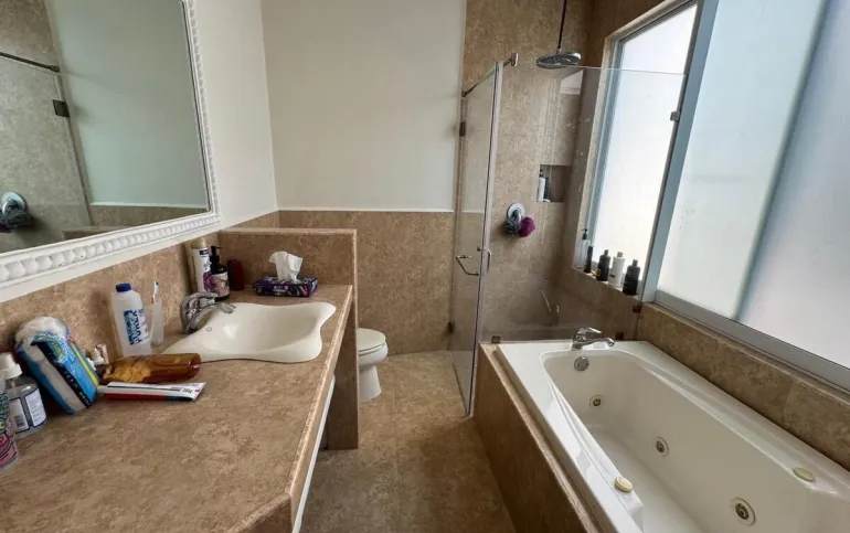 ZONA AZUL Y ORO VISTA HERMOSA A MEDIA CUADRA DE SAN DIEGO A DOS CUADRAS DE REFORMA. CASA SOLA UNA PLANTA 435 M2. JARDIN, ALBERCA 8X4mts. EQUIPADA SOLAR Y CALDERA A GAS, 2 ESTACIONAMIENTOS TECHADOS, 2 TERRAZAS, SALA, COMEDOR, COCINA EQUIPADA LUJO, 1 CUARTO TV o RECÁMARA, 1 BAÑO COMPLETO CON TINA, 2 RECAMARAS CON CLOSET BAÑOS COMPLETOS Y JACUZZIS, CRISTAL TEMPLADO, LA PRINCIPAL CON VESTIDOR. CUARTO DE HUESPEDES CON BAÑO COMPLETO Y CUARTO DE LAVADO. INSTALACIONES ELECTRICAS HIDRAULICAS Y SANITARIAS NUEVAS, CISTERNA 4 MIL LITROS + 2 TINACOS ROTOPLAS, SISTEMA HIDRONEUMATICO, ILUMINACION LED, GAS ESTACIONARIO, SEGURIDAD CCTV internet, PORTÓN ELECTRICO.