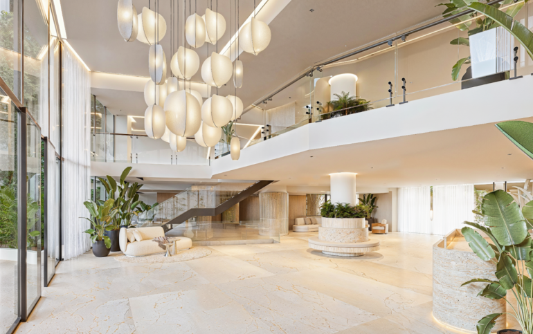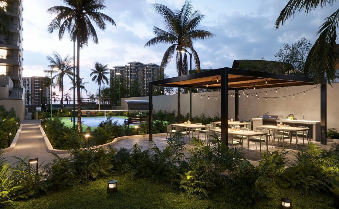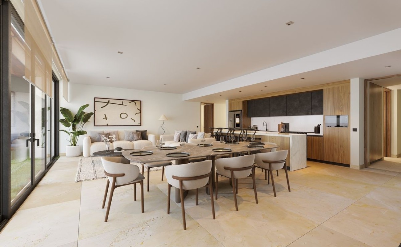 Incluye marina privada, alberca familiar, alberca infinity para adultos, jacuzzis, asadores, lounge bar, spa, gimnasio, business center, fire pit, pet park, kid’s club, área infantil, cancha de pádel, básquet 5, pickleball, volley beach y pool bar.