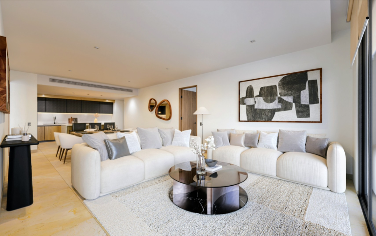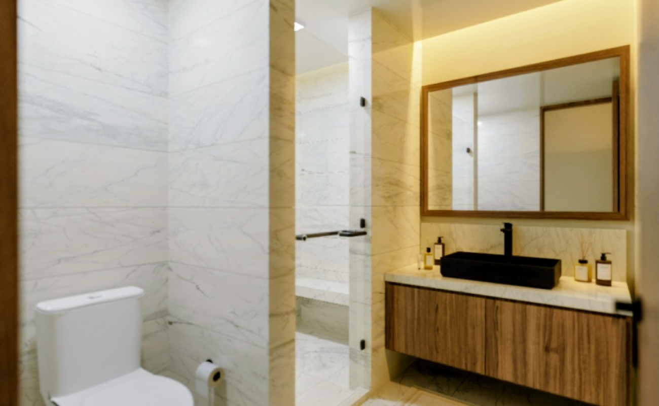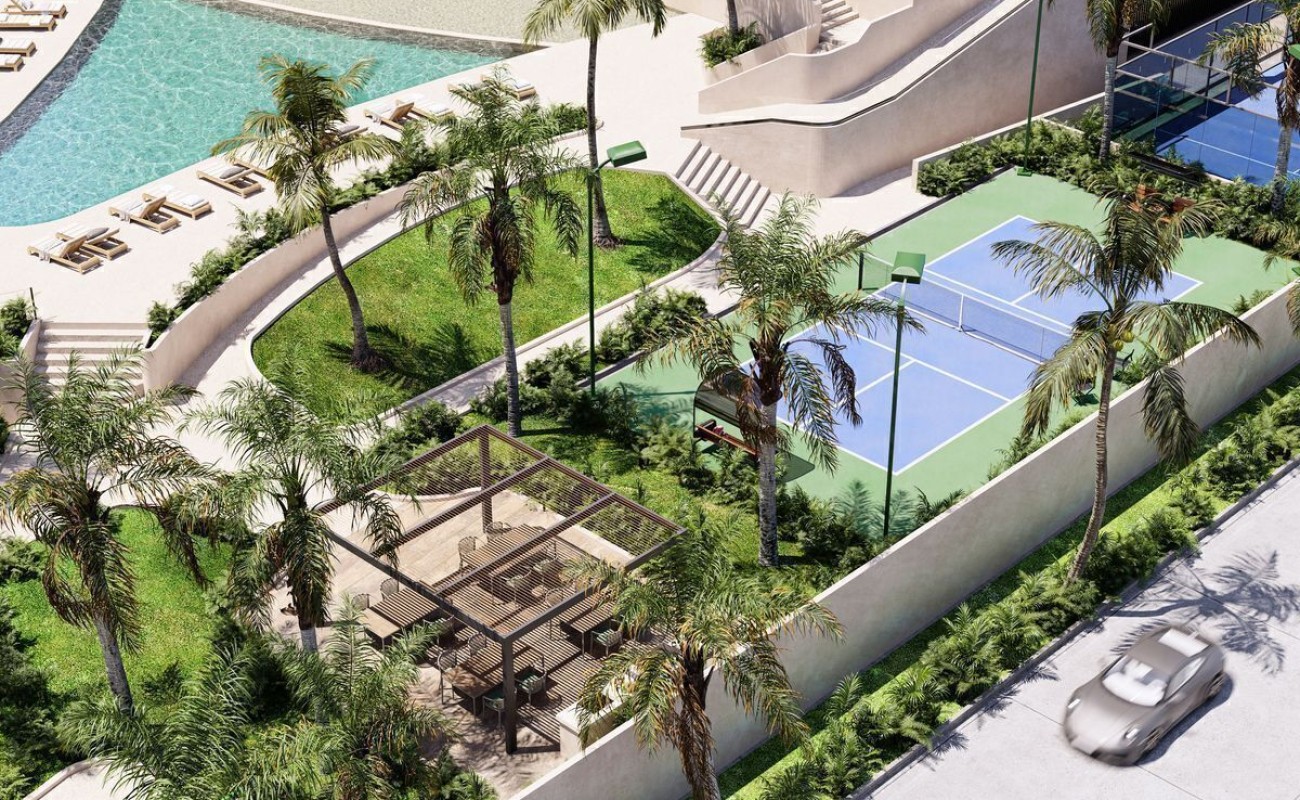 Incluye marina privada, alberca familiar, alberca infinity para adultos, jacuzzis, asadores, lounge bar, spa, gimnasio, business center, fire pit, pet park, kid’s club, área infantil, cancha de pádel, básquet 5, pickleball, volley beach y pool bar.