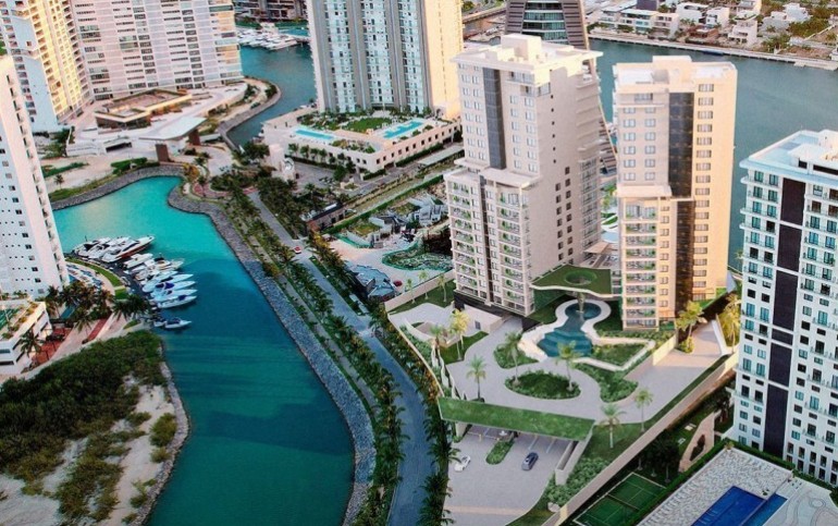 Dentro de un entorno que incluye marina, canal privado, campo de golf diseñado por Tom Weiskopf, plaza comercial e IMAX, así como clubes de playa y canchas deportivas.