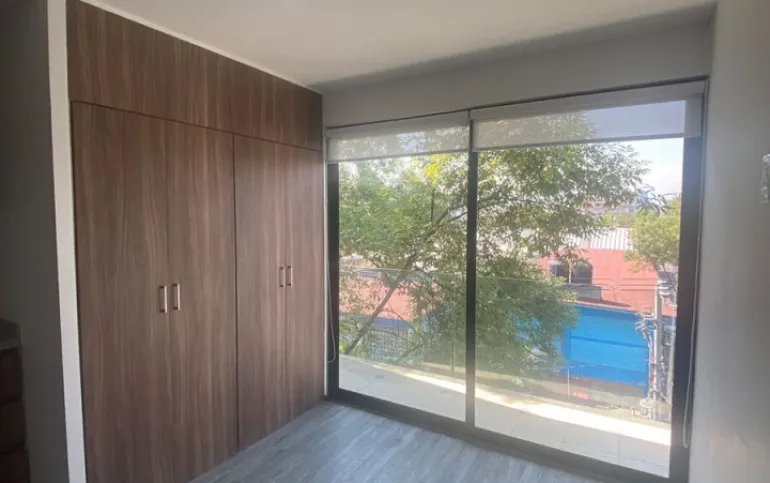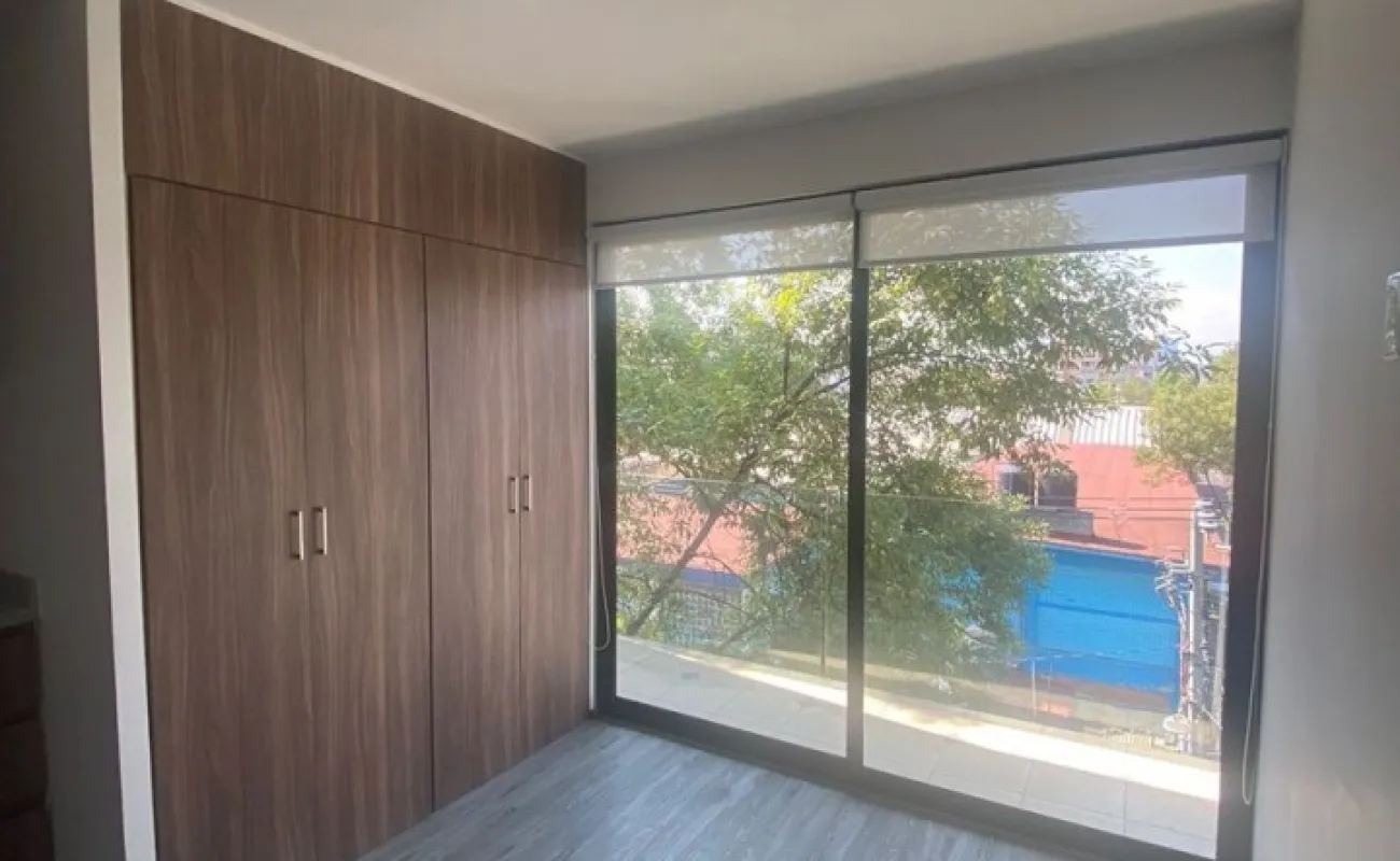 Tipo de propiedad: DEPARTAMENTO CON 2 RECAMARAS CON CLOSET CADA UNA, 1 BAÑO, COCINA INTEGRAL ABIERTA, ZONA DE LAVADO, 2 BALCONES (3 M2 CADA UNO), UNO EN LA ZONA SOCIAL Y OTRO EN LA RECAMARA PRINCIPAL, CON PERSIANAS DE MALLA SOLAR EN AREA SOCIAL Y CUARTOS ADEMAS TAMBIEN CON BLACKOUT, PISO LAMINADO EN TODO EL DEPARTAMENTO, CON ROOF GARDEN PRIVADO DE 32 M2, 1 LUGAR DE ESTACIONAMIENTO, BODEGA, CON ELEVADOR