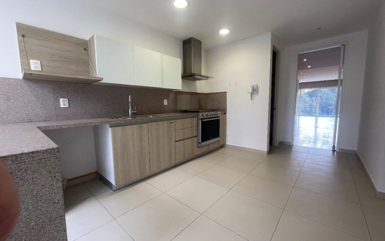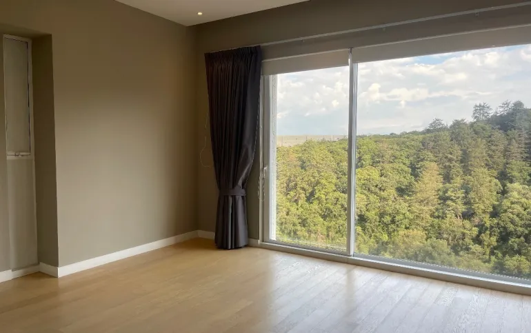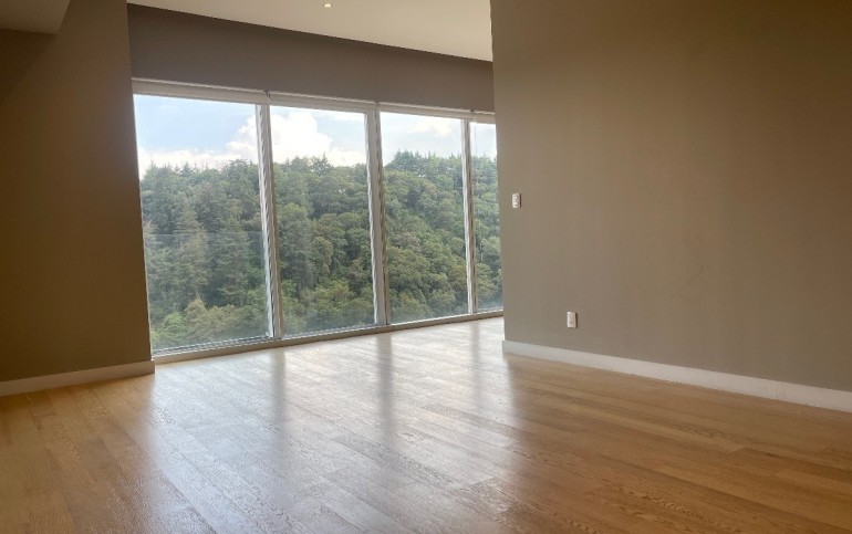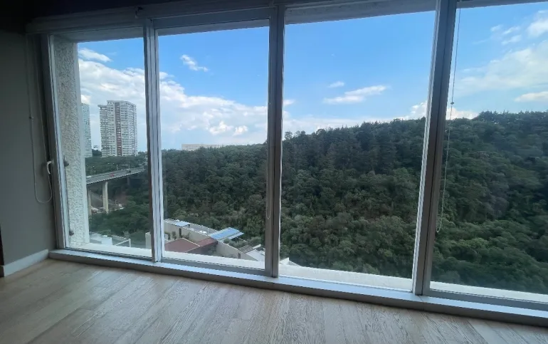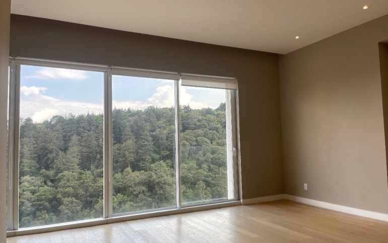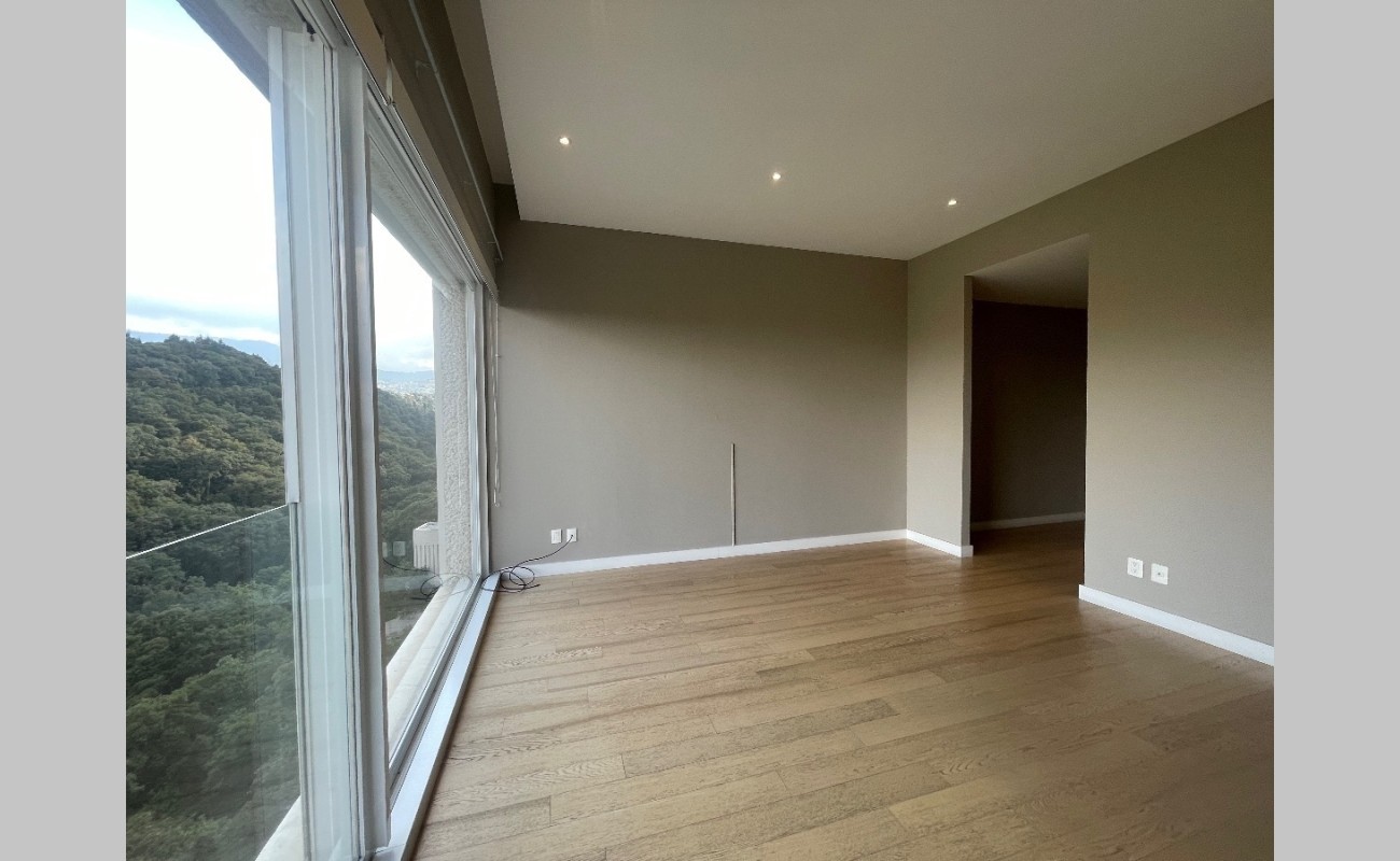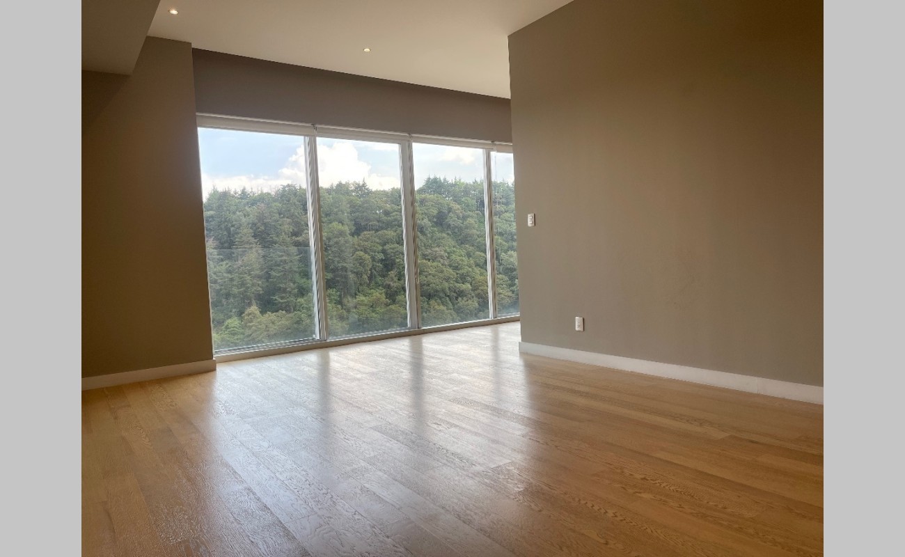 Departamento de lujo en zona exclusiva. En medio de bosques e impresionantes vistas. Gimnasio, alberca techada, canchas de pádel, salón de eventos, salón de usos múltiples, salón de jóvenes, ludoteca, áreas verdes, casa club en Cumbres Santa Fé.