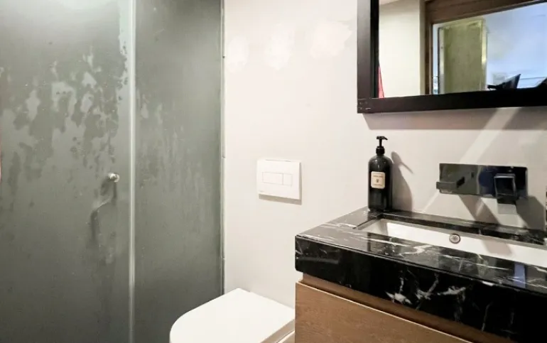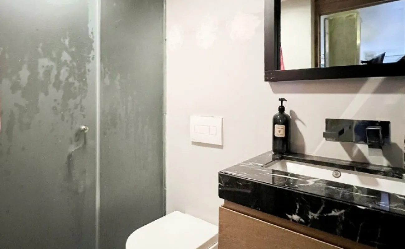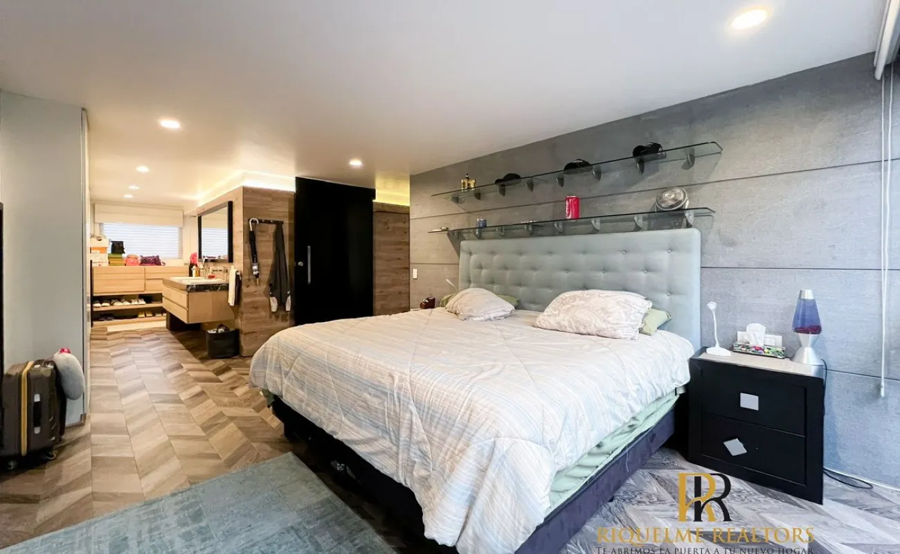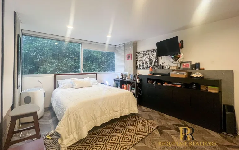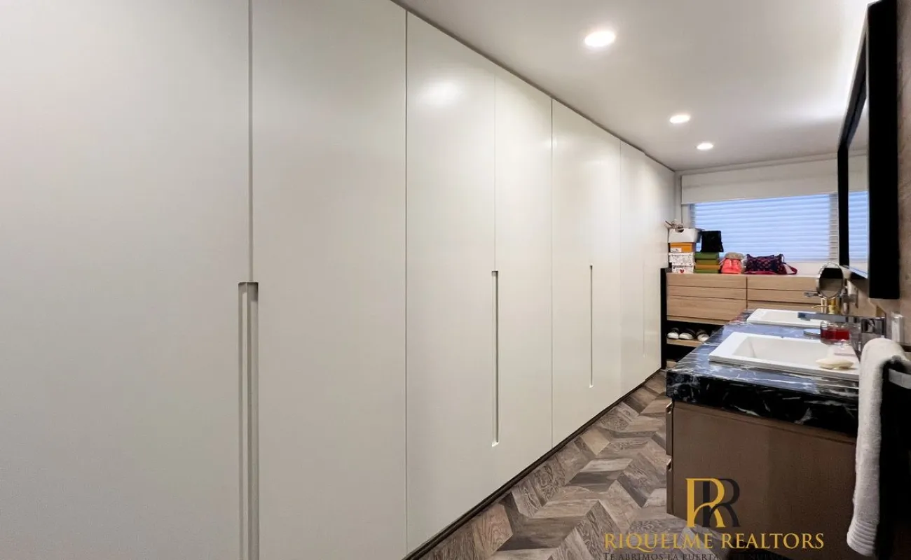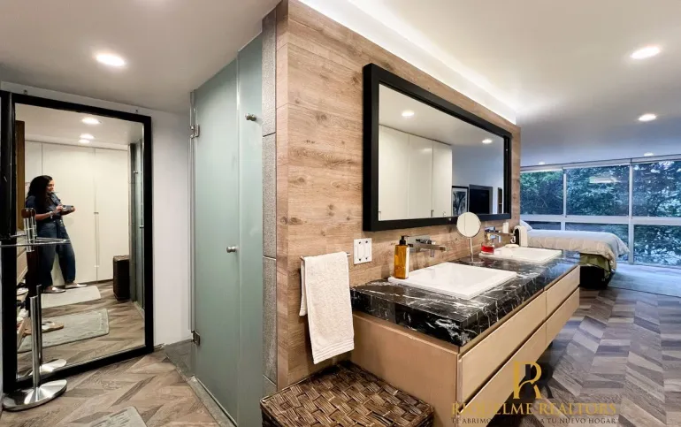 2 recámaras. Principal con baño completo, doble lavabo y vestidor. Secundaria con clóset y baño completo fuera de la habitación