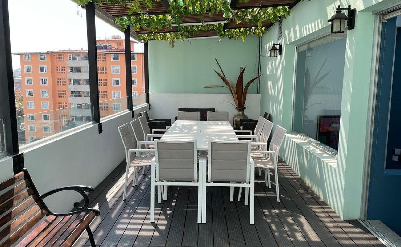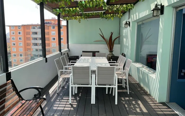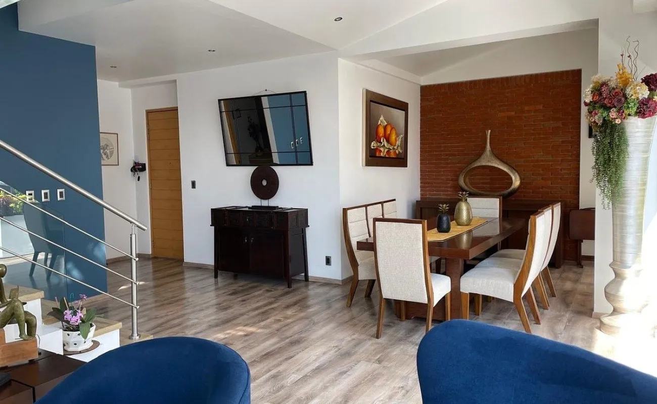 Hermoso PH de 3 pisos. 280m2, amplia estancia con sala/comedor, cocina integral con cuatro de servicio con baño y área de lavado.