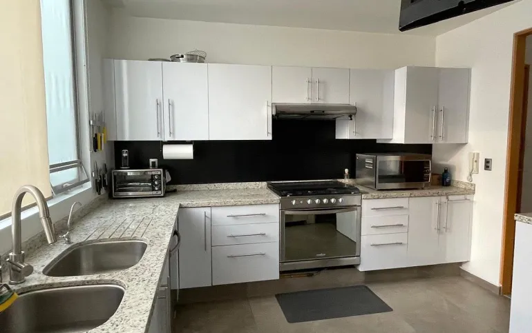 3 recámaras, tres baños completos 1 medio baño para visitas. Roof garden con pérgola y área de asador. Estudio con baño completo con opción a cuarta recámara.