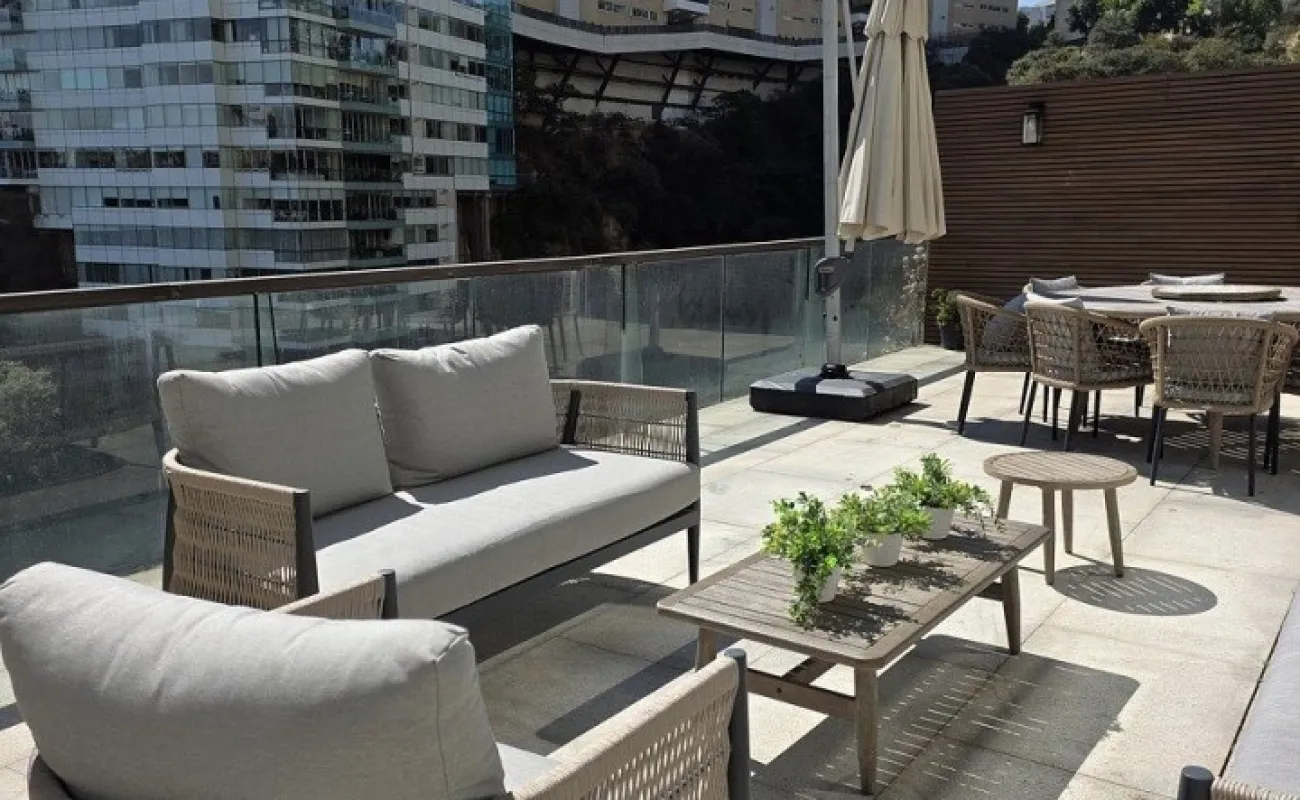 Esta construido en 2 pisos. En PB se encuentran la estancia, un cuarto de tv, la cocina, área de servicio y la terraza