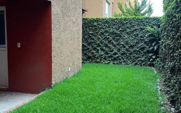 La casa tiene jardín propio y en el condominio hay un jardín común, el estacionamiento es techado para 3 autos