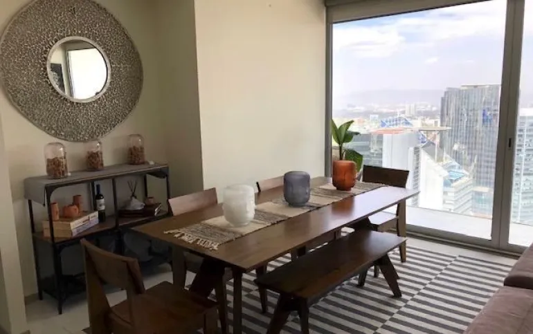 Excelente departamento AMUEBLADO en Residencial Península Santa Fe con acabados de lujo y vista panorámica. Cuenta con dos recamaras, dos baños completos, sala, comedor, cocina, amplio balcón, área de lavado y dos lugares de estacionamiento. Amenidades: Alberca techada, spa, terrazas, gimnasio, salones de juegos, salones de usos múltiples, bares, asadores, Roof Top, salón de belleza, billares, we work, entre otros.